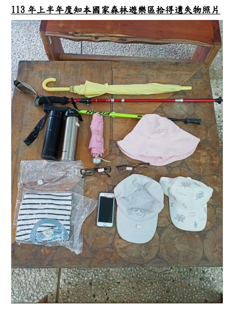 一、本次公告知本國家森林遊樂區尚未認領之遺失物年份為109年至114年。 二、遺失物品項請參閱附件。若有您的遺失物品或相關疑義,請撥打089-510961轉10,由遊樂區服務台為您服務。 三、本次自公告日起滿6個月之無人認領遺失物,將依據民法規定辦理後續事宜。 2025/07/22新增公告 一、新增113年下半年度、114年上半年度知本國家森林遊樂區拾得遺失物。