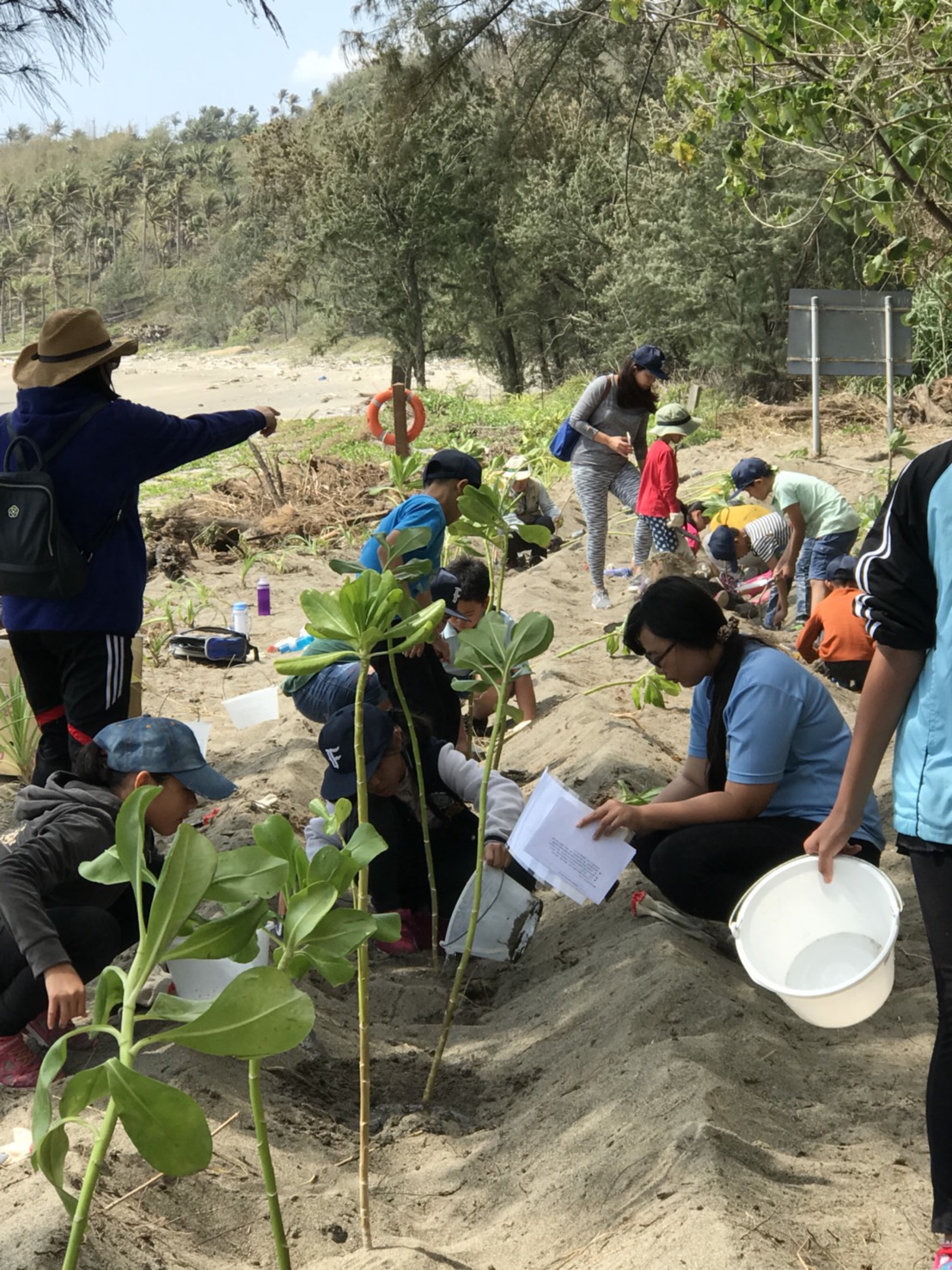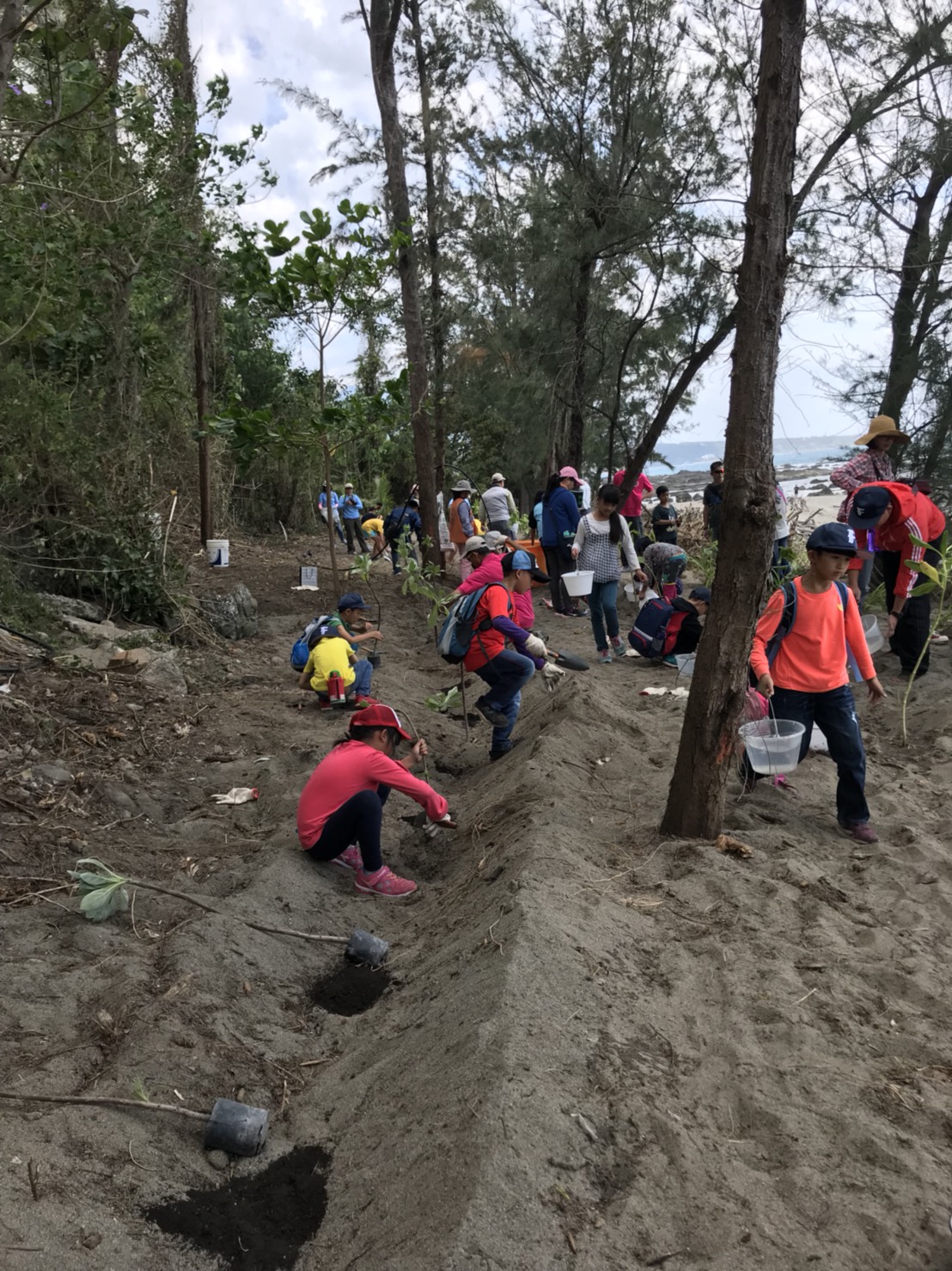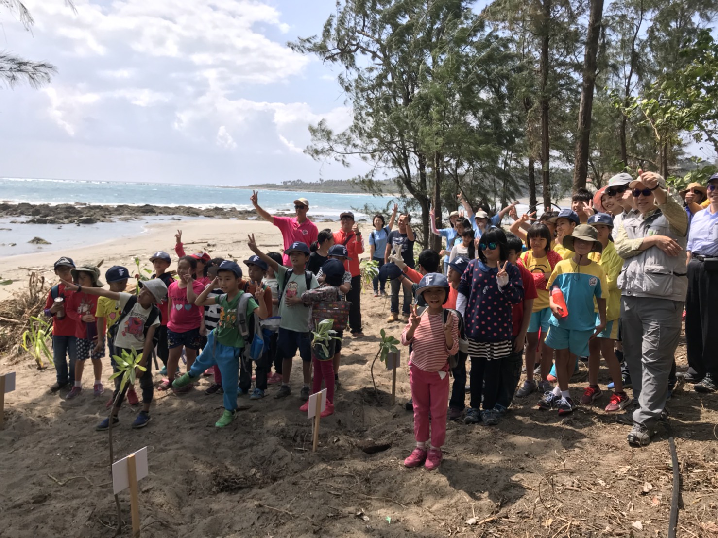 臺東林管處知本工作站在3月30及31日連續兩天與成功工作站攜手,結合臺東縣政府、臺東區漁會、富山國小及、史前館、荒野保護協會及臺東野鳥協會等單位,於卑南鄉富山護漁區舉辦植樹營造海岸林及復育綠蠵龜棲地等活動,活動在中午12:00圓滿結束。 在活動前,感謝富山國小及利吉分校師生70餘人,於前一天(30日)下午在知本自然教育中心環教師的陪同下進行淨灘,總共清理了一般垃圾24.1公斤、資源回收物19.1公斤,為今天的活動揭開序幕。今天活動在縣府農業處許處長瑞貴、富山國小廖偉民校長、富山護漁區李總幹事振元等多位貴賓與富山國小師生及護漁區伙伴60餘人,攜手在沙灘上植下防風、定砂的草海桐、白水木、林投及黃槿等共約200株,期盼未來能提供進入護漁區的遊客優質的海岸林環境,更為復育綠蠵龜產卵棲地共同努力。 現場同時辦理贈苗活動,在地鄉親一早就扶老攜幼帶著發票及廢電池,到場排隊等候兌換樹苗及參與環教闖關活動。現場也規劃了老少咸宜的環教闖關遊戲,包括林試所太麻里研究中心推廣海岸林造林技術、台東史前博物館的考古、垃圾與人類文化歷史及臺東野鳥學會鳥類觀察與荒野保護協會節能減碳、林管處政風廉政反貪及成功工作站保育業務宣導,直讓參與活動民眾直呼收穫豐富。 臺東林區管理處表示,本次特別選擇在富山護漁區辦理海岸林營造及環教活動,意在讓民眾體會「山海一脈--森林是大海的戀人」的緊密關係,藉機傳達林務局積極建構「台灣生態保育綠色網絡」的重要施政理念,透過每年別出心裁的植樹贈苗活動與民眾一起「再現台灣原生綠!」。