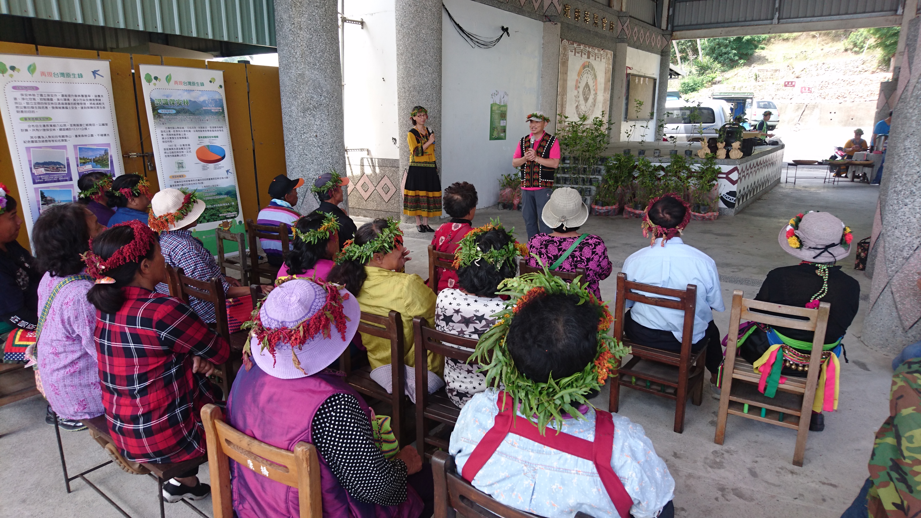 排灣族古諺說:「香,是魔鬼的臭」,臺東林管處大武工作與太麻里瀧部落於4月21日上午,以具有民族風的「排灣FU植樹活動」,在4月22日世界地球日前夕,攜手為部落建構具有排灣FU的香氛保護傘,參加人員更在引導之下,春遊查拉密,深入瞭解排灣族人如何運用充滿山林智慧的生活態度,悠遊於山海之間。 4月21日上午10點,在查拉密部落的巴拉冠,臺東林管處副處長黃群策戴著香草花環,以排灣族古諺「香,是魔鬼的臭」為基調,將百餘株梔子花、七里香送給部落居民,然後一起在巴拉冠旁邊栽種,為查拉密部落重建具有排灣古調的香氛網,希望能阻絕壞東西進入部落。卑南鄉利嘉巡守隊也遠道來參加植樹活動,村長林肯毅上台介紹卑南FU的植物,還以精彩的歌舞與在地村民交流,賓主盡歡。 臺東林管處副處長黃群策表示,鄰近查拉密部落的向陽薪傳木工坊,自2009年成立以來,在各方的協助及前公東高中校長黃清泰的指導之下,除了讓部落族人習得木工技藝,得以發展天賦、製作精緻木藝產品以外,木工坊經理陳秀如更深入部落,並與臺東林管處大武工作站共同規劃出具有在地特色的植樹活動。活動中並穿插在地人文生態旅遊導覽,以生動的故事講述部落傳說,及排灣族人的山林智慧,大家都聽的津津有味。 在散步查拉密時,大家發現路旁竟有幾株銀膠菊,大武站人員立刻動手移除,將植物體放在垃圾袋中悶壞,並向村民說明這種幼時像艾草、開花極似滿天星的銀膠菊,可能導致過敏,每個人嚴重程度不一,請村民如有發現,應著長袖衣物、戴手套和口罩移除,以避免大面積擴展。