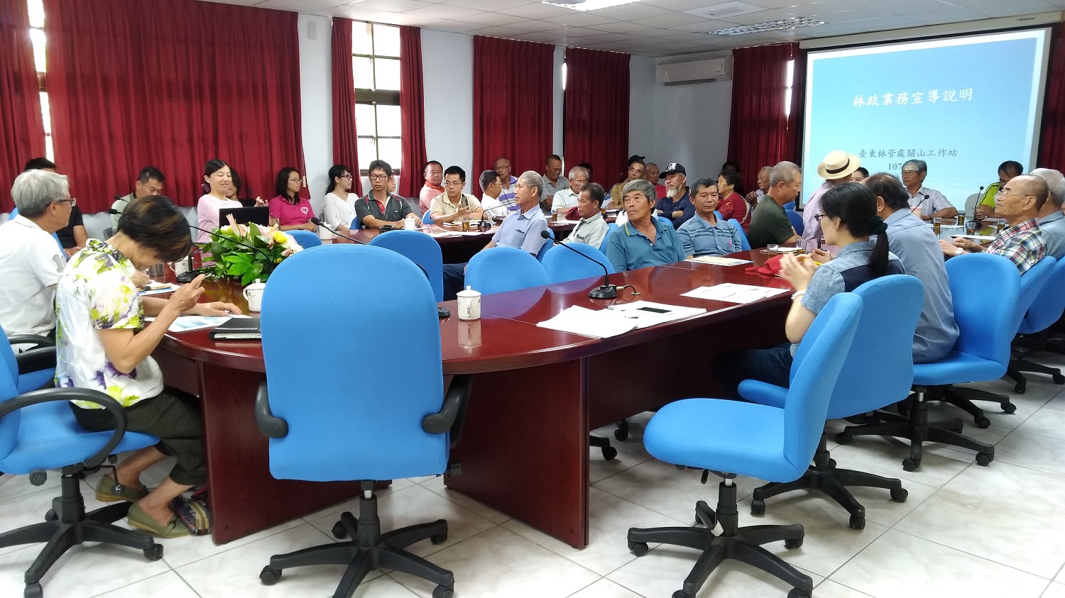 臺東林區管理處關山工作站於本(107)年5月24日首次召開「與租民有約」座談會,邀請居住於鹿野、延平、池上及關山等地共計26名出租造林地承租人前來參加。林管處劉瓊蓮處長率領林政課及作業課承辦人員、關山工作站主任莊瓊昌與全體同仁等於會場聽取民眾意見。會中除宣導林政業務相關規定,針對修正之出租造林地工寮興建事項及保管木處理等進行說明;另也回答租民們提出有關獎勵造林、苗木申請、病蟲害防治等各項業務疑問,期能加強公務單位與民眾間之溝通,達成雙贏局面。 造林工作為長期的投資事業,要有收穫非得經一、二十年才可;劉處長為兼顧林農生計,會中鼓勵承租人造林時改種植殼斗科、相思樹、楓香等樹種,不僅生長快、伐期短,亦可作為培植椴木香菇用材,短期即能收獲部份收益。何姓承租人另提出「碳交易」及「友善農耕認證」等觀念,建議林管處除要求林農造林厚生,亦可仿效國外推動溫室氣體二氧化碳排放權交易,或整合同一地區的林農辦理森林認證成立合作社,如此對改善林農的經濟才有實質性幫助。劉處長即交付工作站積極輔導轄內林農成立林業合作社,以開拓森林副產物的生產與行銷管理。 因承租人提問反應熱烈,林管處允諾將向上級單位傳達,同時向林農宣導森林之公益效用,希望大家勿任意濫墾濫伐林木,共同為保存臺灣美麗的山林資源而努力。