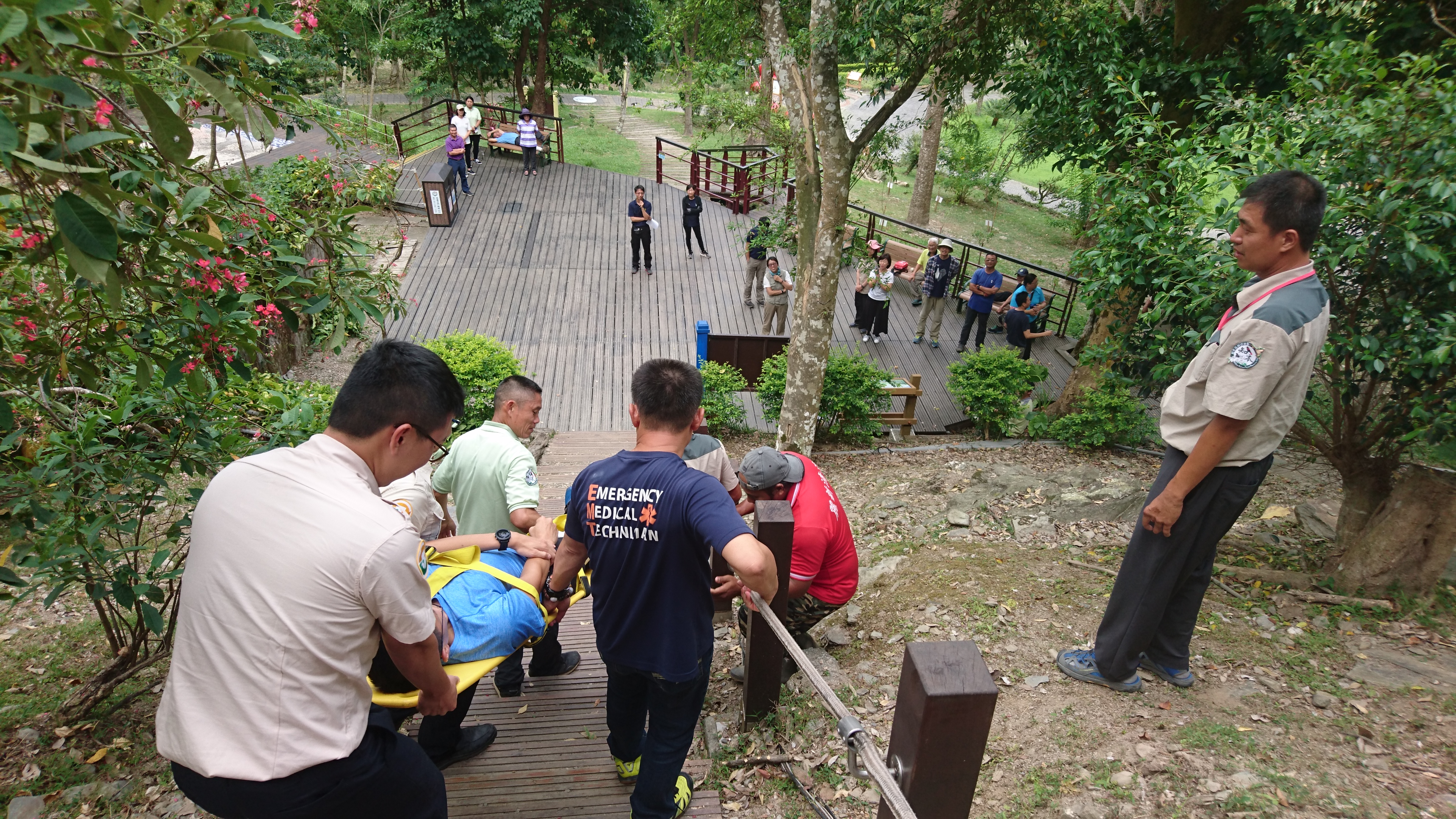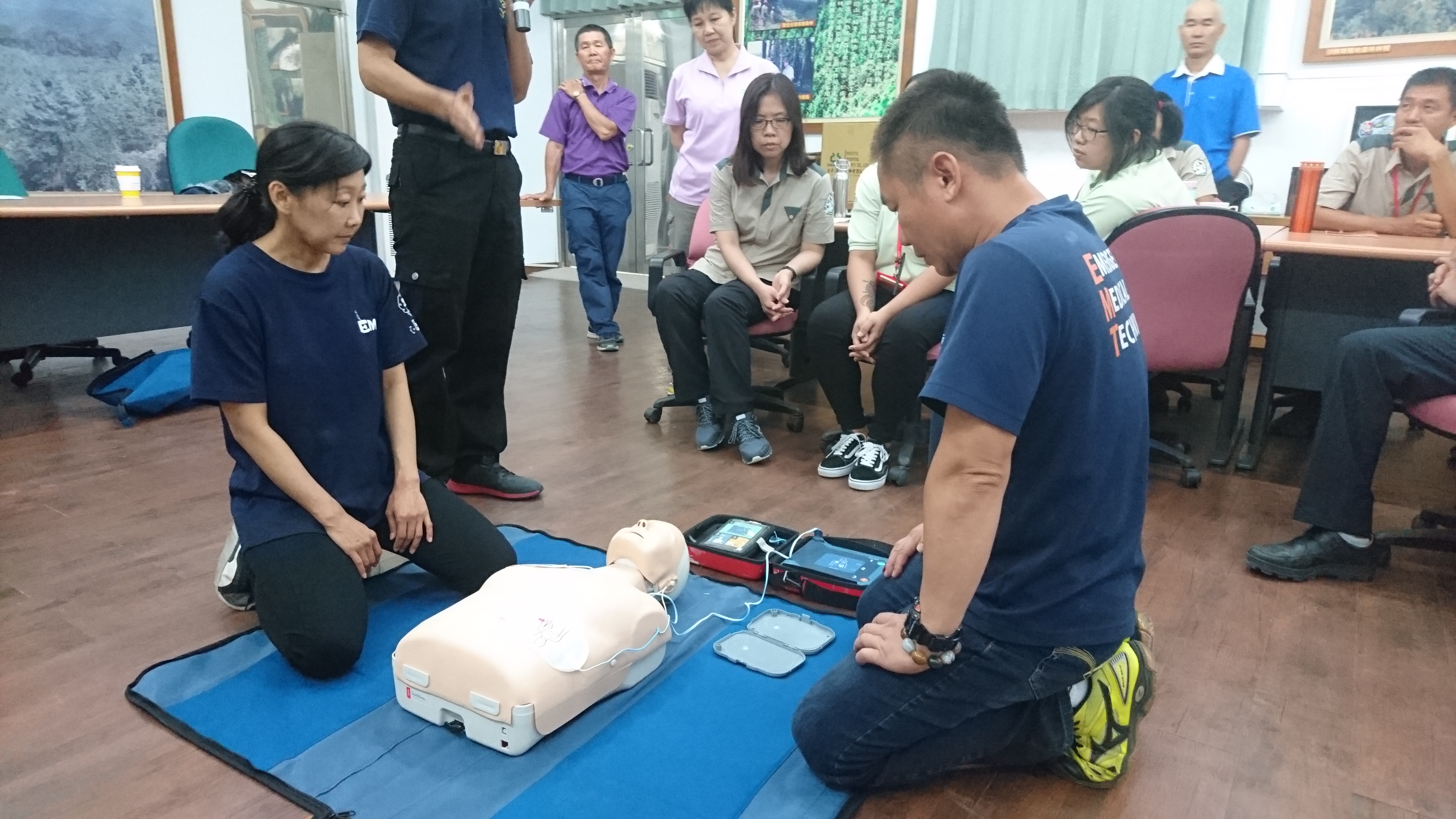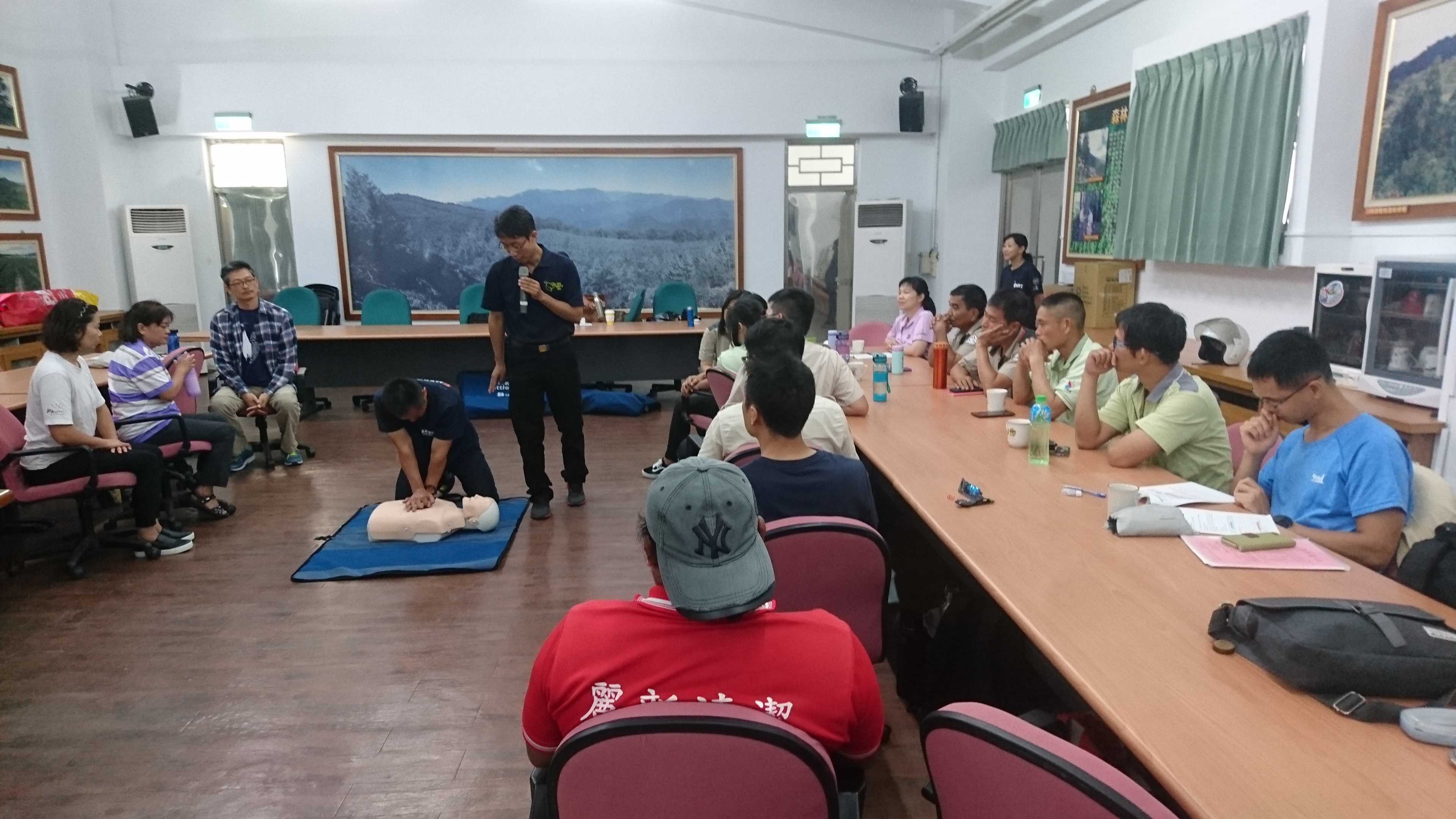 為了加強森林遊樂區旅遊安全及現場人員緊急救護應變能力,臺東林區管理處於今(31)日在知本國家森林遊樂區,辦理「緊急救護暨模擬演練」課程,由臺東縣消防局陳永峻先生擔任講師,包括知本、向陽2個國家森林遊樂區同仁、大武山生態教育館及自然教育中心環教師、國家森林志工等計45位學員參訓。 臺東林管處每年都有舉辦此類課程,今年有別以往的是採取模擬演練方式,讓學員們都能夠以最基本的方式,進行各項生命急救術的操作,如:心肺復甦術(CPR)、自動體外心臟去顫器(AED)的操作,緊急外傷處理(野外止血、包紮、固定搬運)等。另外,因為轄區內有嘉明湖等熱門的高山步道,講師也特別就高山症的介紹及處置方式進行講解,讓學員分組操作如何使用攜帶型加壓袋(PAC)。 臺東林管處處長劉瓊蓮表示,森林遊樂區、國家步道或對外各服務據點的同仁們是第一線與民眾接觸的一群夥伴,藉由專業救護人員的指導,除可提昇現場人員的專業知能,增強人員的急救及救難能力外,也能強化服務場域的安全。