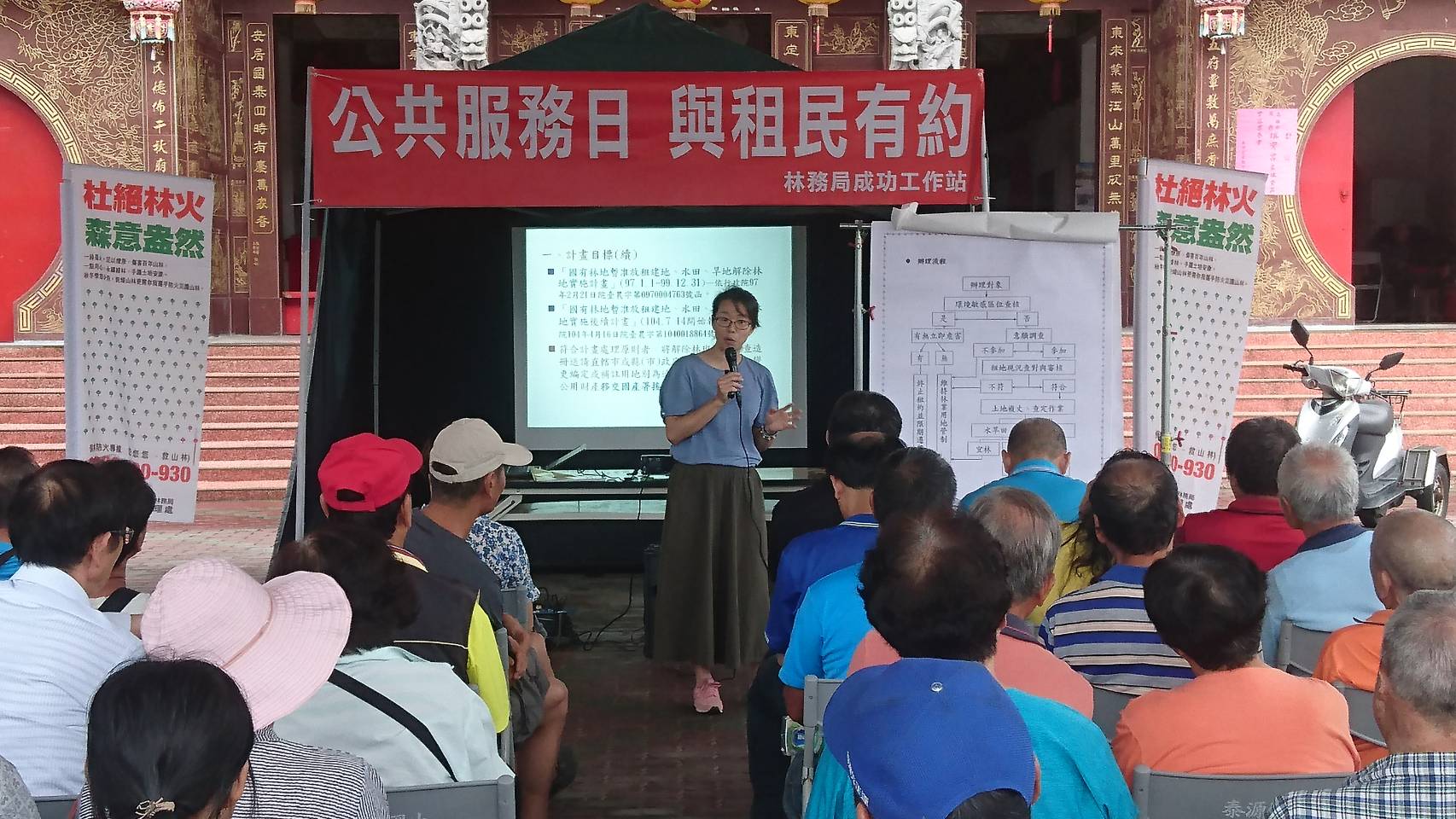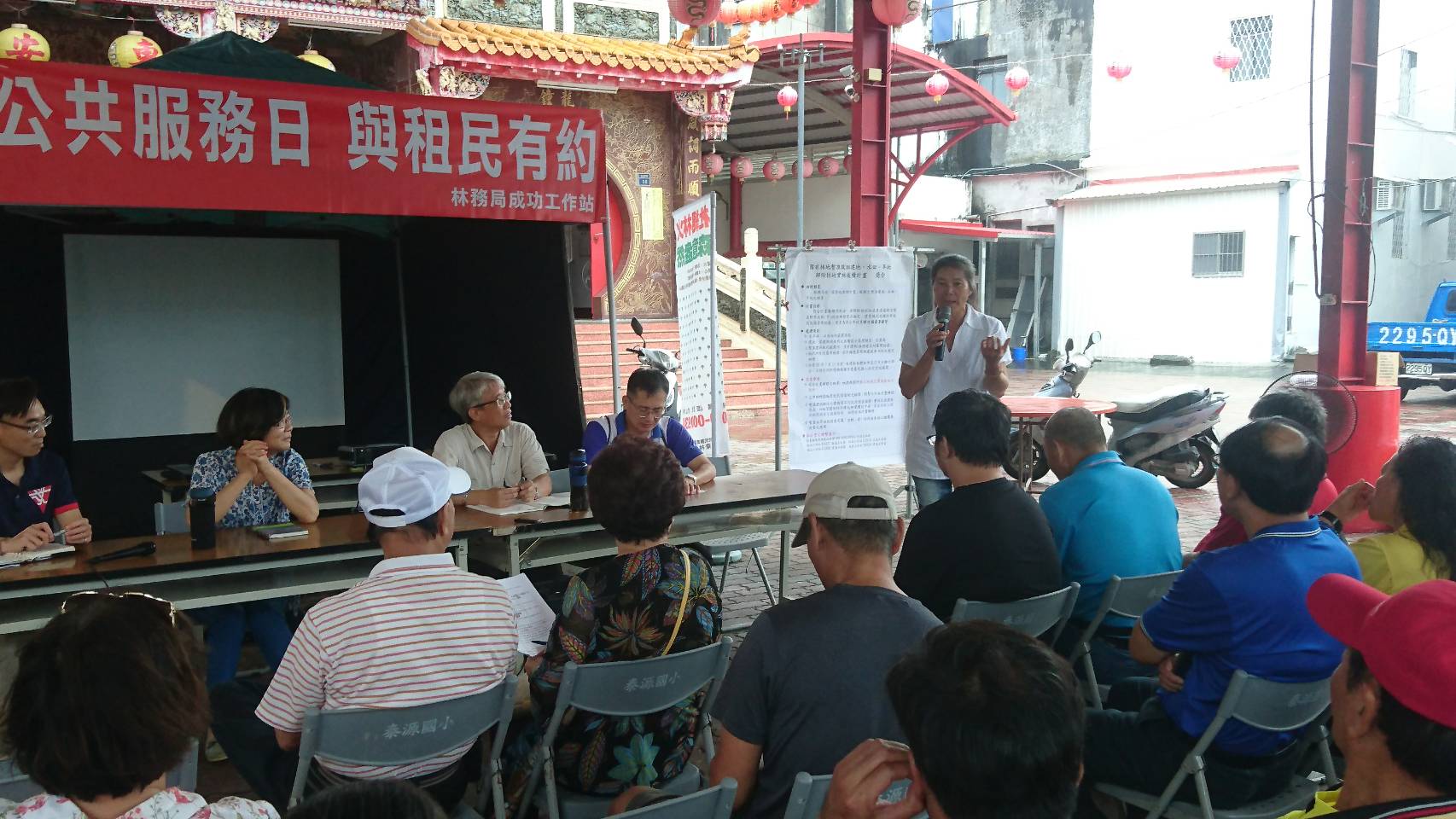 今日(11)日上午9時30分臺東林管處至東河鄉泰源村東安宮辦理1場座談會,與泰源地區的林農說明最新修正的各項林地管理政策及國有林地暫准租地解除林地計畫,林管處劉瓊蓮處長率領各課室代表、成功工作站主任張勝傑與工作站同仁列席,東河鄉公所、成功鎮公所、中華紙漿公司及東河義消分隊也都派員出席,吸引近70名林農出席,甚至有遠從台北趕回來參加座談會。 泰源幽谷是東河鄉知名景點,海岸山脈環繞、河流蜿蜒其中,正是里山倡議中的混合地景,當地居民大多務農或從事租地造林工作。為了能推廣與民眾權益相關的政策及雙向溝通,林管處特別至泰源村信仰中心東安宮廟埕舉辦座談會,向林農說明林地管理規定的放寬修正、林下經濟、林業永續多元輔導方案、外來種防治及獼猴防治與電圍網補助等。因泰源地區為暫准用地承租人的集中地區,林管處也特地於座談會中說明暫准建地、水田及旱地租約,如何申請解除林地變更為丙種建地、農牧用地並鼓勵符合資格的林農提出申請。 七塊厝承租人陳榮妹提出樂見林地管理政策的放寬及考量民眾的生活權益,也建議能多舉辦這樣的座談會互相交流;承租人李清亮先生也現身說法,跟農友們分享過去1-2年在租地進行林下養菇的成果;居民賴玉子則感謝近幾年在林管處及專家的協助下進行架設電圍網防治獼猴危害。承租人張發仁則提出林木褐根病為害,希望請專家協助病害防治;遠從台北來的承租人蔡爾貴也建議工寮及聯外道路的維護也請林管處多加協助。劉處長逐一給予各位林農回覆,也鼓勵泰源地區的林農成立林業合作社,一起發展林下經濟及森林產業。