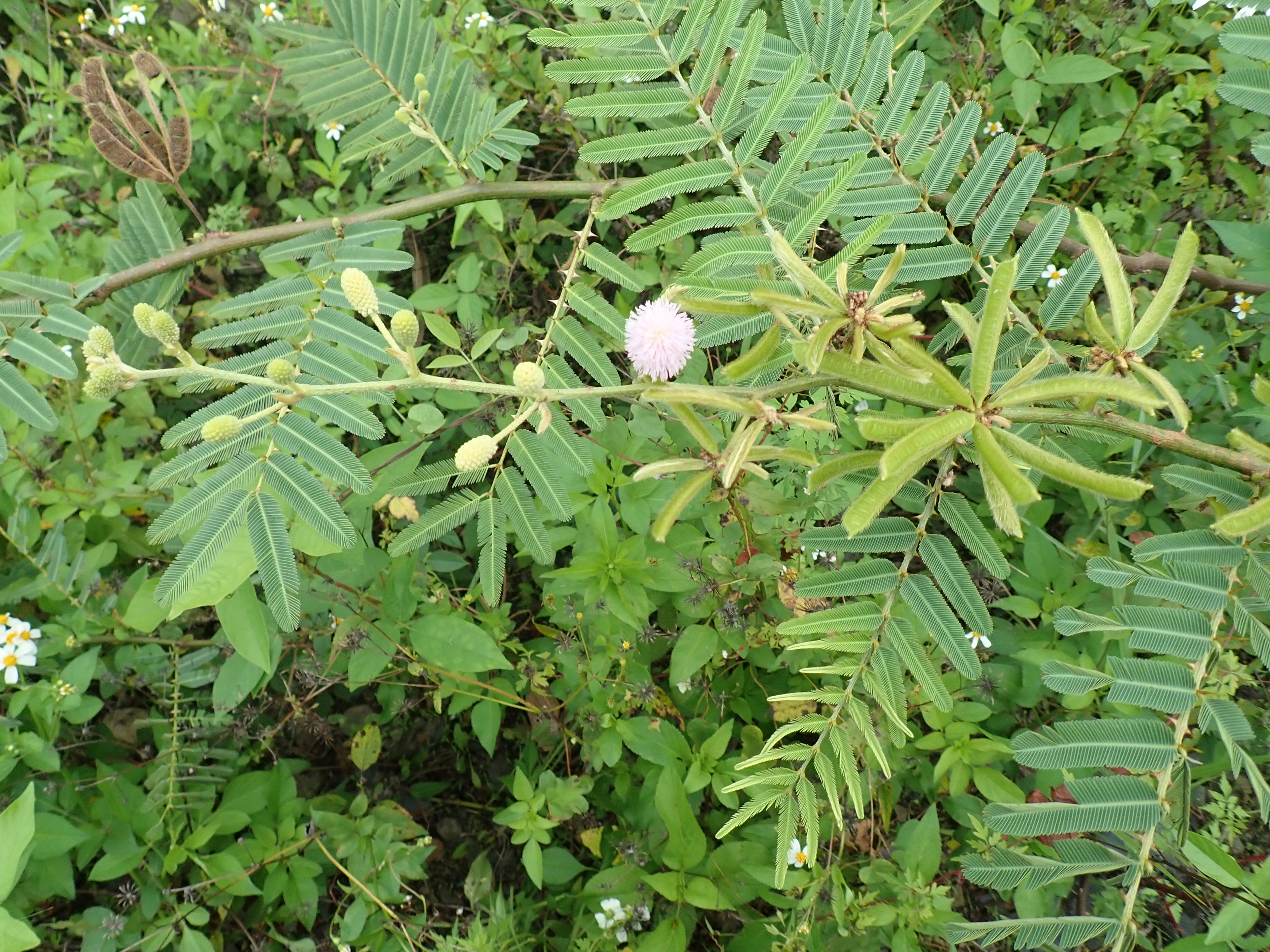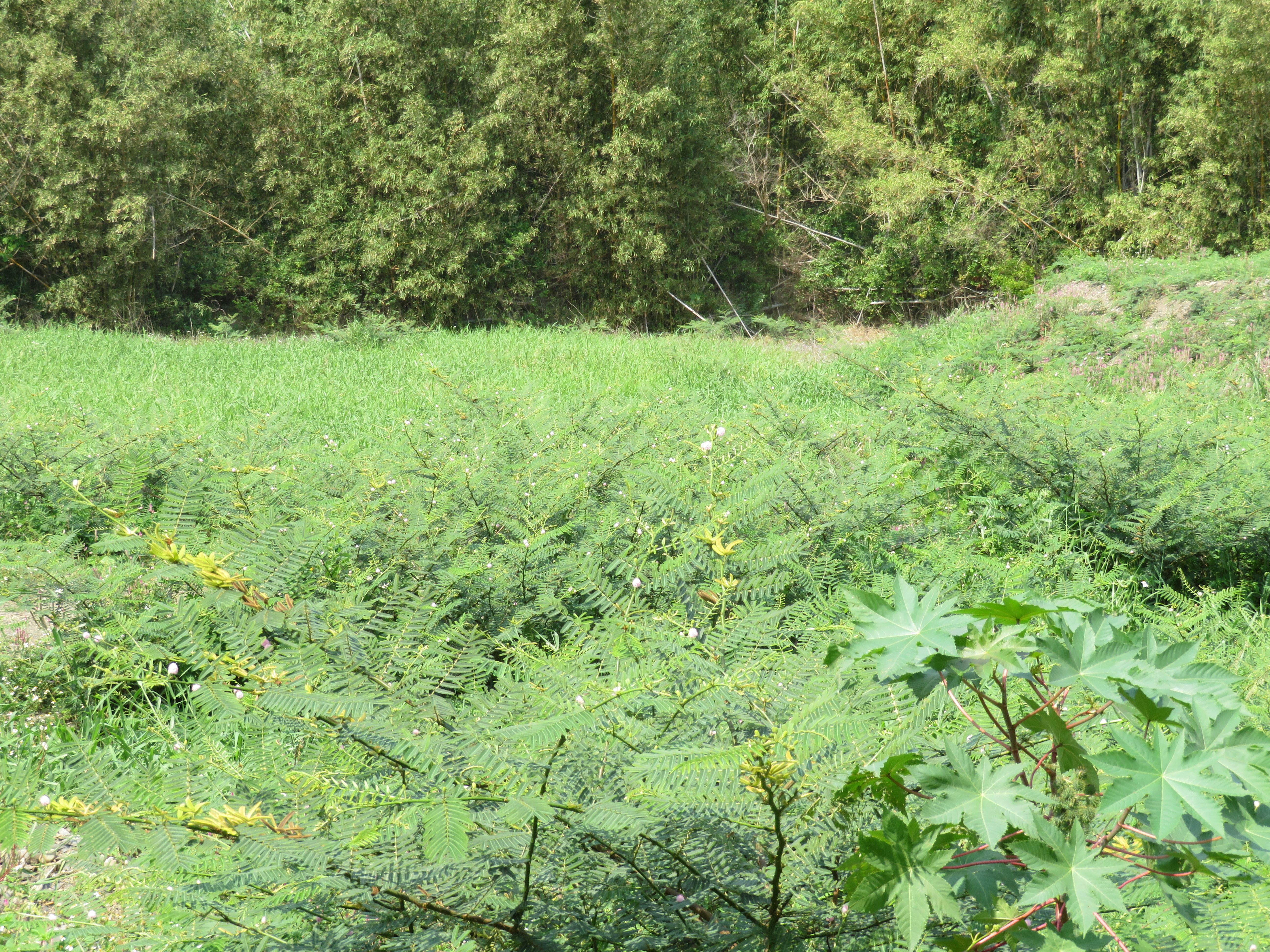 林務局臺東林區管理處調查發現,被列為世界百大外來入侵種刺軸含羞木已入侵臺東境內的安朔溪、朝庸溪及大武溪等溪流。刺軸含羞木一旦入侵原本物種豐富的河川生態系,形成單一物種之灌木叢林,不只造成河道淤塞,嚴重影響當地生態環境。這種植物本身會大量吸水,有很強的蒸散作用,所以溪流的水很快會消失,造成河道面積降低,再不進行防除工作,對臺東南迴沿線的溪流將會造成一場生態浩劫。 刺軸含羞木又稱美洲含羞木,原生長在南美洲的含羞草屬植物。此物種全株生有毛茸和銳刺;葉互生,二回羽狀複葉;花粉紅色或紫紅色;莢果褐色,密被剛毛;它所分泌的含羞草素能壓抑其他植物生長,剝奪其他原生植物生長空間,每平方公尺可產生9千顆種子,可見其傳播之迅速。 刺軸含羞木不但繁殖力超強,銳刺多到連放養的牛都不敢靠近生長沼澤,剷除亦極為困難,為有效防治其蔓延擴張,臺東林管處於107年4月首次進行試驗剷除工作,於朝庸溪下游至出海口、朝庸溪上游古庄橋上方共剷除5.26公頃,先用怪手挖除後再以焚燒、掩埋方式處理,併持續監測已防治區域。然今(108)年4月發現朝庸溪下游又有復發情形,現正進行第二次剷除工作。 為全力剷除並防堵刺軸含羞木向北蔓延擴張,臺東林管處於107年9月主動邀集臺東縣政府、大武鄉公所、達仁鄉公所、金峰鄉公所、太麻里鄉公所等單位,共同針對刺軸含羞木研商防除處理,中央及地方政府共同執行防除工作。林管處也委請林業試驗所進行生理及監測調查,並以UAV調查金崙溪以南、安朔溪以北區域的分布情形,希望能徹底防除且不再向北蔓延。刺軸含羞木的防除不應僅由政府機關執行,也期望大家共同剷除這百大外來入侵種,以降低對生態環境之衝擊,增進河川健康,營造人與自然共生之友善生態環境。