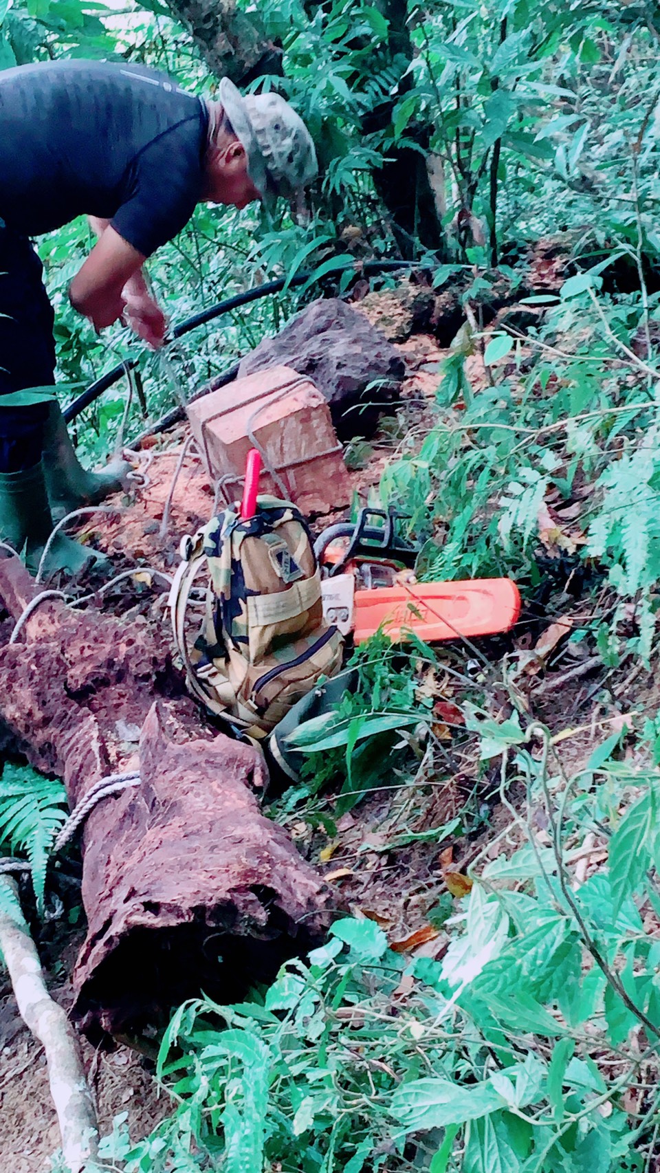 臺東林管處關山工作站會同保七總隊第九大隊台東分隊執行查獲森林法案件,執行犯罪現場指認,當踏入國有林班地延平事業區第14林班,聽見不遠處有異常鏈鋸裁切聲,森林護管員及保七警員立即前往查看,撞見正在裁切貴重牛樟木的吳姓犯嫌,當場人贓俱獲,過程中犯嫌一度拒捕逃逸,經查緝人員鍥而不捨追捕下,於山崖邊順利將氣力放盡的吳姓犯嫌緝捕歸案,同時取出犯罪工具鏈鋸1把,贓木2塊共計37公斤,市價1萬餘元,目前全案移送保七總隊第九大隊台東分隊擴大偵辦中。 臺東縣關山地區森林資源豐富,近年來潛入山區盜取牛樟的山老鼠仍時有耳聞,因許多宵小仍為利益,鋌而走險,臺東林管處表示:守護森林是林務工作人員的重要職責,將持續不斷與警方密切合作,共同查緝不法,本次事件也在林、警合作下當場人贓俱獲,成效卓著,因此呼籲山老鼠,勿心存僥倖。 臺東林管處關山工作站吳文雄主任表示,藉由林、警密切合作查緝不法案件,確實維護生態保育、森林資源保護為山區查緝聯防小組之職責之外也。呼籲民眾千萬不要以身試法,貪圖己利。若竊取森林主副產物,將違反森林法第50及52條,處一年以上七年以下有期徒刑,併科贓額五倍以上十倍以下罰金。