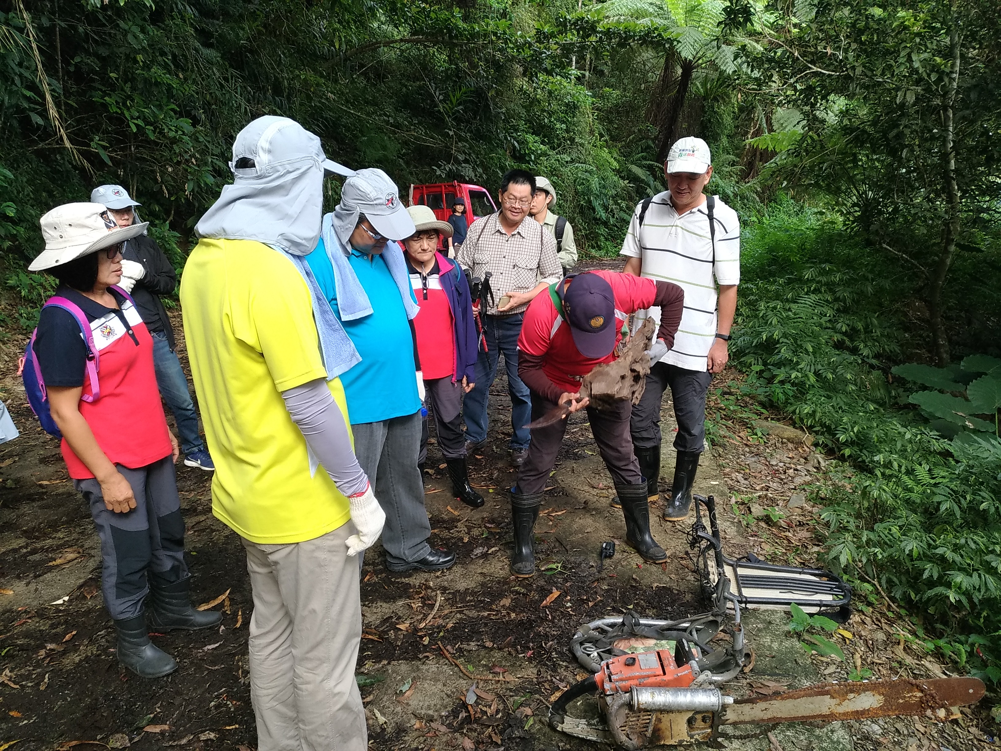 108年8月7日林務局臺東林區管理處藉著臺東地方檢察署召開「檢察官會議」行程,特邀臺東地方檢察署張檢察長曉雯及13位檢察官、臺東地方法院唐院長光義、臺東縣警察局邱局長文亮、臺東縣調查站張副主任微中、法務部洪參事培根及法務部行政執行署花蓮分署謝分署長耀德等6個單位,共18人親赴利嘉林道了解林管處森林保護工作並勘查盜伐現場,目睹林木被盜伐之現況,讓各機關對森林生態破壞有深刻體認,提高未來偵辦審理相關案件上的幫助。 在會議上,臺東林管處劉處長瓊蓮親自向各與會單位報告防範盜伐及防止國土遭受破壞之作為,張檢察長曉雯也表示對臺東林管處保護國土之作為表示肯定,並呼籲各檢察官加強與林管處交流合作,共同保護生態環境。會議結束後前往利嘉林道盜伐現場,各檢察官及各單位人員為親臨盜伐現場,也紛紛拿起登山杖邊拉繩索跟著攀爬陡峭山林小徑,林管處現場同仁在途中向各機關人員介紹山老鼠常用犯罪工具及手法,加強檢察官偵辦盜伐案件之臨場感;另外也請利嘉社區巡守隊現場解說利嘉林道森林環境及分享與臺東林管處共同埋伏查緝山老鼠盜伐之歷程。 臺東林管處劉處長瓊蓮表示,本次行程讓更多檢調及司法單位體認保護森林環境之重要性,期望各機關間未來有更密切的合作交流,讓破壞國土行為及山老鼠無所遁形。