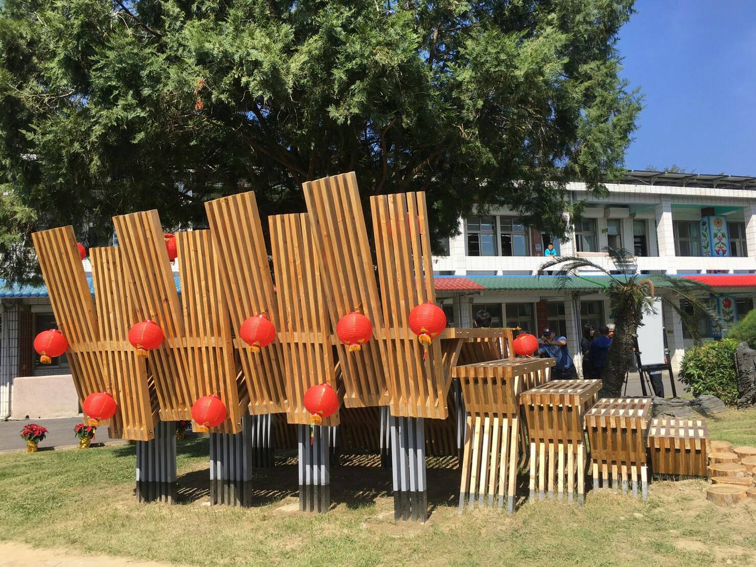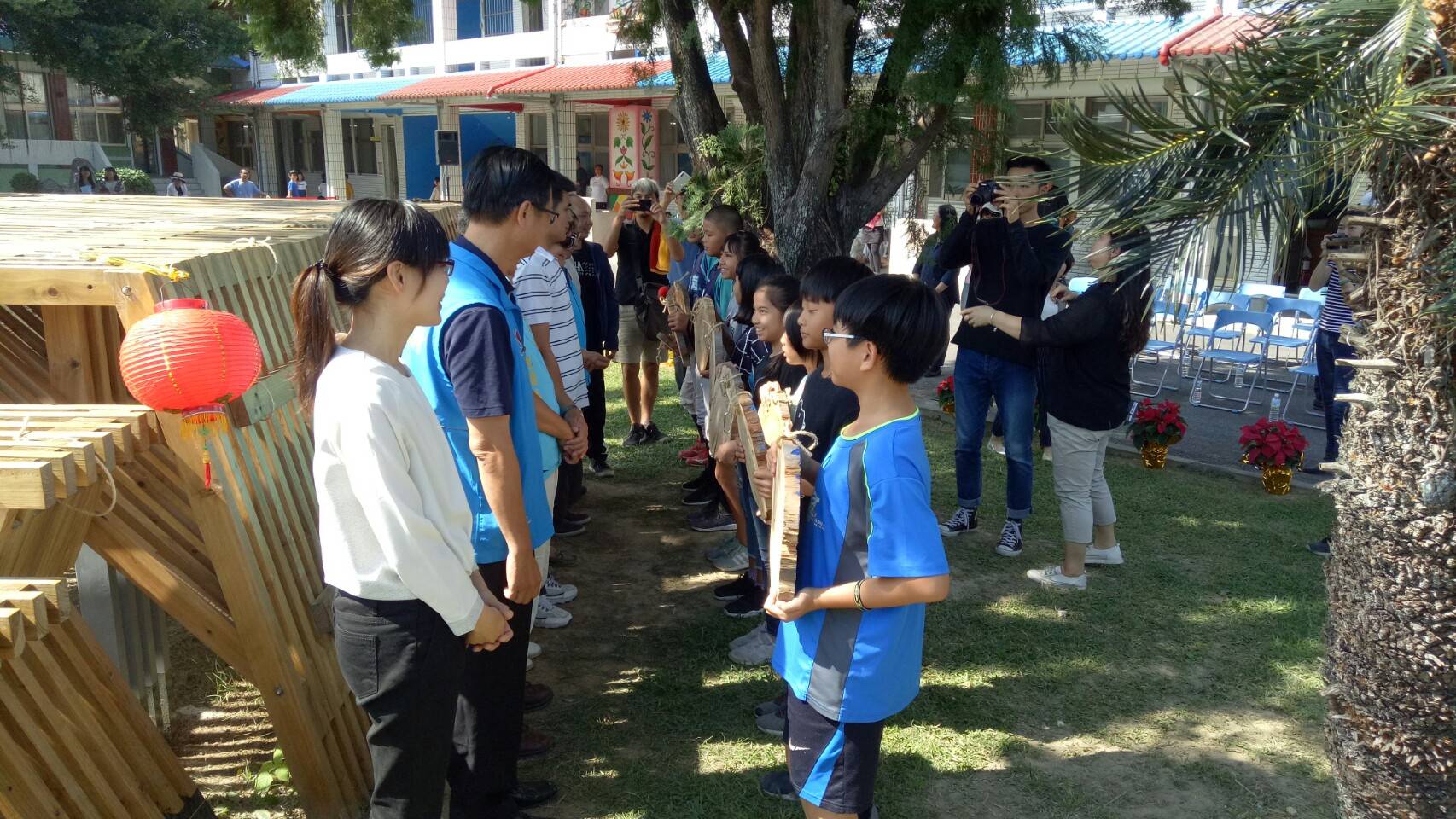 台灣義築協會與林務局、台東林管處合作於台東縣卑南國小建造了一個樹屋平台,並於今(13)日上午10時30分舉行「閱讀夢公園-國產材樹屋移交活動」,包括林務局造林生產組李建霖科長、臺東縣政府鍾耀仁秘書、縣議會、市公所及公東高工都派代表出席。活動在卑南國小管樂隊及柔道隊的表演下熱鬧開場,並由與會貴賓一起將孩童們手繪的香杉木板掛在平台上,象徵閱讀夢公園正式啟用。 為了推廣國產材應用的多元化,林務局補助台灣義築協會辦理「國產木竹材運用於人道建築之案例研究與推廣」計畫,嘗試用行動參與方式,將將國產材應用在建築上。在台東縣卑南國小、公東高工的協助下,建築師們化身行動魔法師,走進卑南國小和一群熱愛打棒球的小朋友,一起動手改造閱讀環境。選在校園廣場中的台灣肖楠大樹下規劃一處木構平台,校方將它命名為「卑南閱讀夢公園」,希望緊鄰大樹旁的木構平台可以成為孩子們閱讀、活動及休憩的夢想空間,讓孩子在親近樹木之餘,也能輕鬆閱讀、放鬆身心。 台東林管處劉瓊蓮處長代表林務局出席時表示感謝台灣義築協會的建築師們,願意下鄉服務,也感謝公東高工木工科學生及卑南國小的孩子們一起築夢、成就這件美好的事。今年國小的少棒選手們甫獲得世界少棒冠軍,隨著木構平台空間的啟用,閱讀夢公園更加充實,走進校園內,除了棒球場外,還有這個平台讓孩子可以休憩、閱讀、交流與分享。感謝過程中一起逐/築夢、參與的每一位夥伴,也歡迎社區部落的朋友們一起進入閱讀夢公園,分享生活故事。