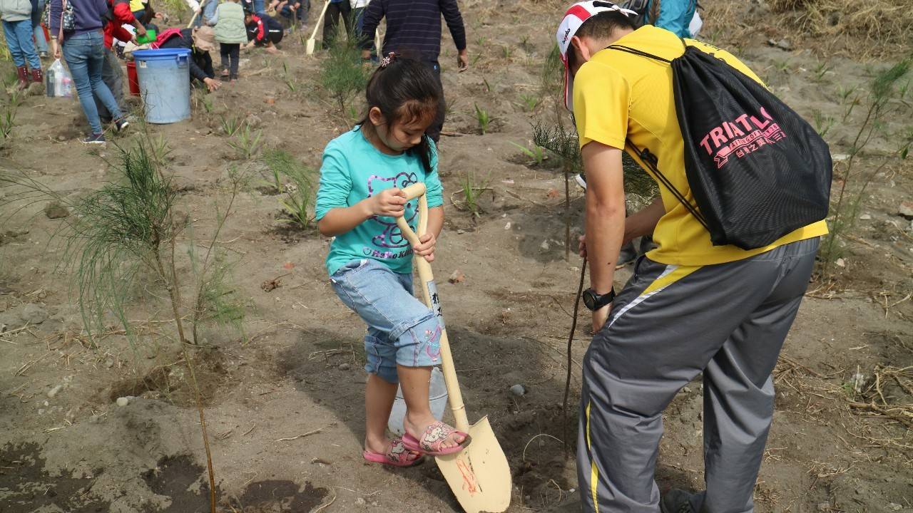 微風清拂、倒影婆娑,林務局與光陽工業股份有限公司合辦的環島守護保安林活動,今(22)日午後來到了臺東縣成功鎮都歷海灘,各地響應的輕檔車車友、臺東林管處同仁、都歷部落與成功三民社區居民及攜家帶眷熱情的民眾近200人齊聚在都歷海灘(部落稱是船下海的地方)及第2514號防風保安林,一起植樹、護樹和淨灘活動。
