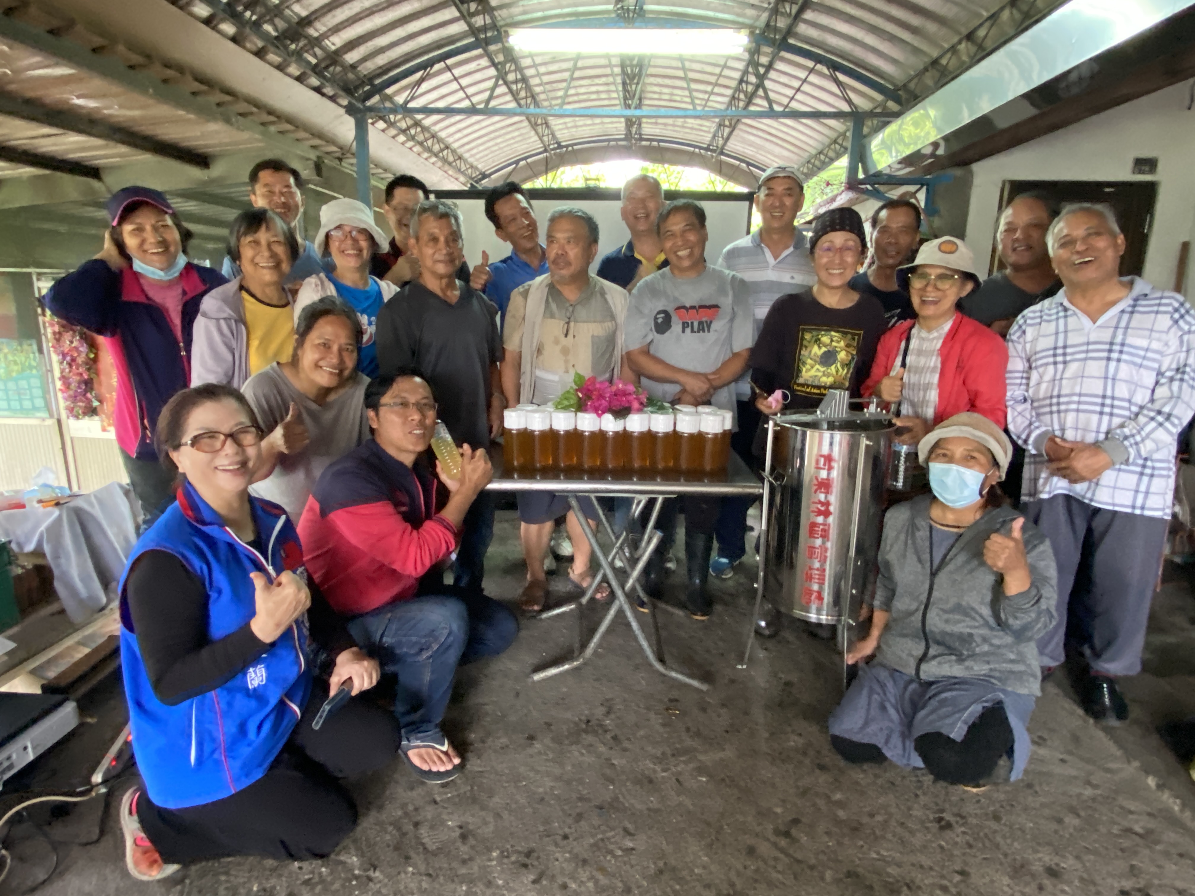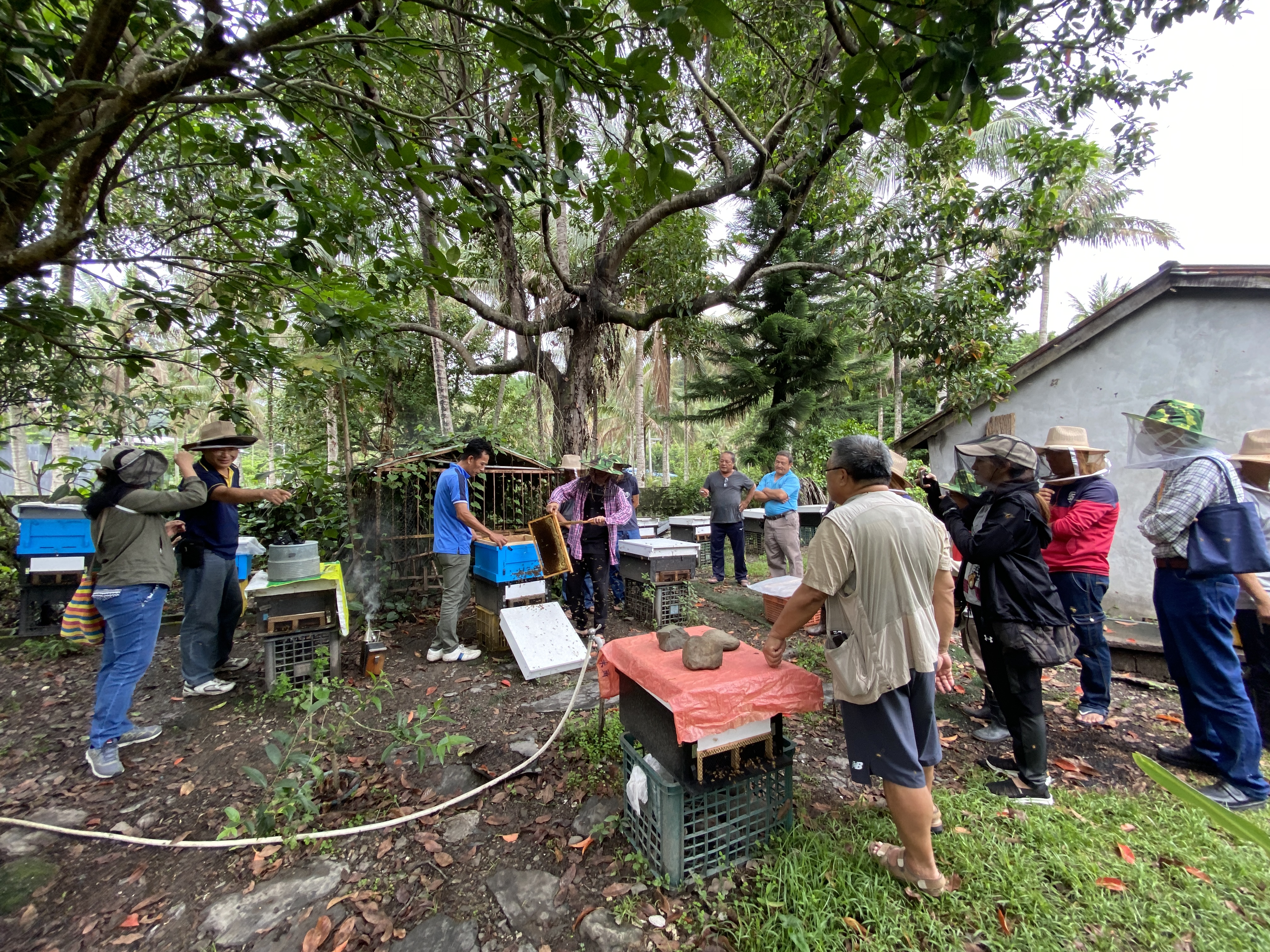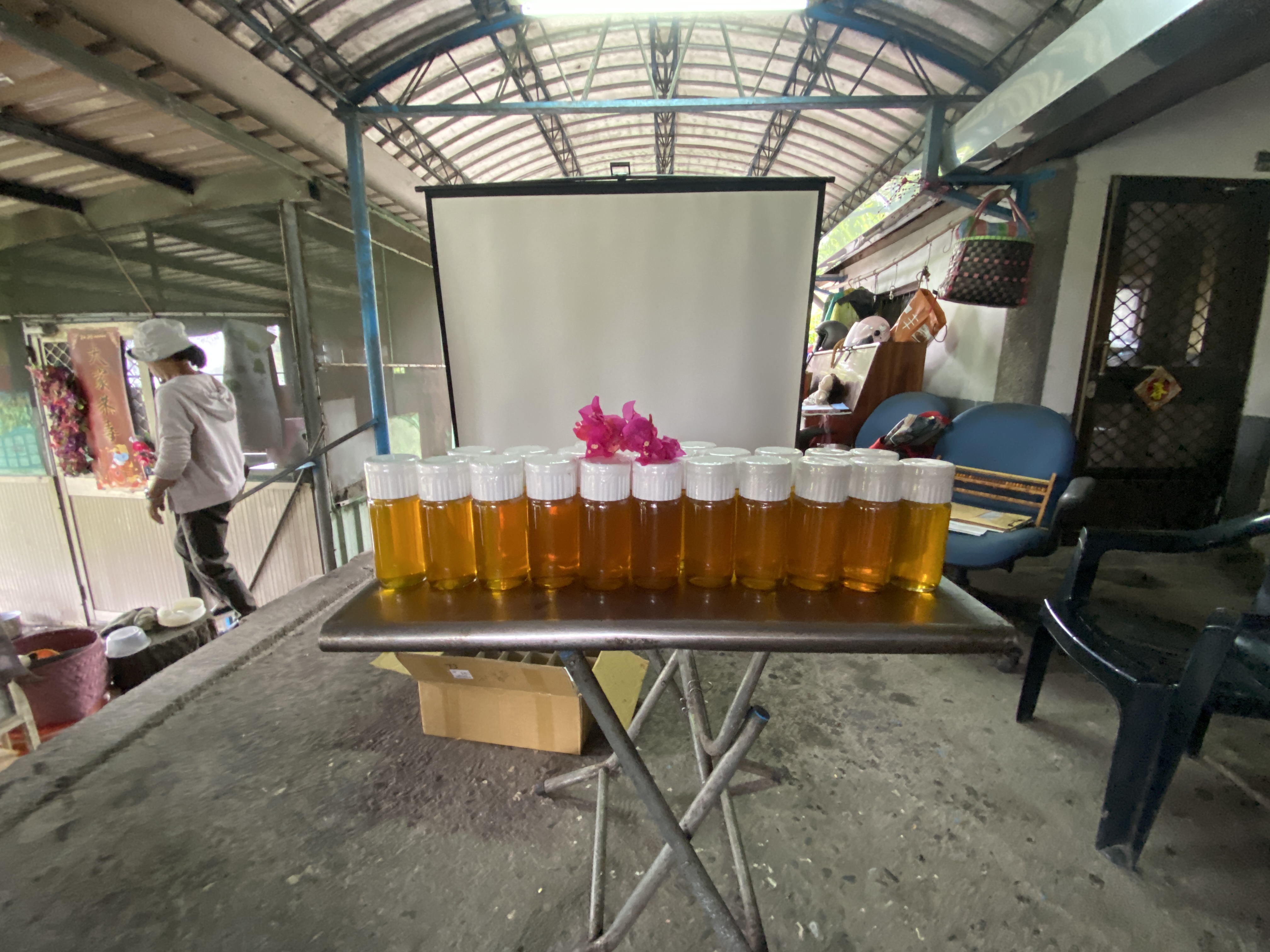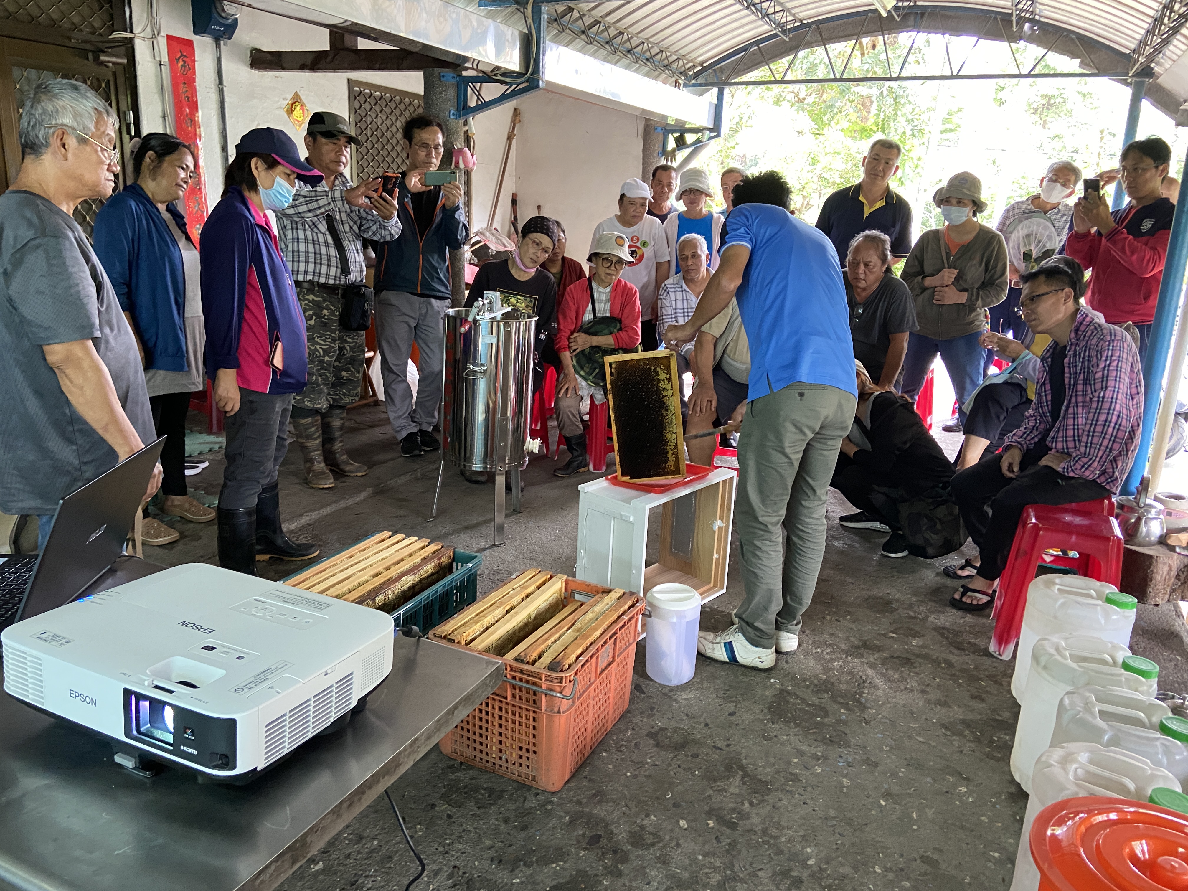 林務局臺東林管處輔導卑南鄉利嘉社區進行為期2個月的林下養蜂技術培訓課程,昨(24)日進行最後一堂課,由學員們親手採收蜂蜜,看著一瓶瓶澄黃色的蜂蜜在手中產出,社區夥伴們個個笑得合不攏嘴,林下養蜂課程第一階段也順利結業,未來也期望森林蜂蜜能成為利嘉社區特色產業。 利嘉社區參與林務局社區林業計畫-森林保護篇山林巡護工作多年,致力於森林保護、盜伐採查緝,是社區參與保育的典範,去年林務局推動林下經濟,開放林地可申請種植段木香菇及木耳、金線連、及養蜂。利嘉村林肯毅村長即向林管處表達社區居民們想學習養蜂的技術,經林管處評估後,邀請在地養蜂專家以陪伴型課程模式指導社區居民養蜂,課程時間訂在居民們較有空閒的週日上午,期間自3月1日至5月24日。 參與課程的學員從每箱2片佈滿蜜蜂的巢片與1隻處女王入門,由基礎的認識蜜蜂組成到繁殖蜜蜂,進階課程由如何人工育王至蜜蜂分群,蜂箱由剛開始的12箱增加到課程結束的33箱,5月24日是階段課程的最後一堂課,學員們動手採收自己養的蜂產品,收穫滿滿,每位學員也都初具養蜂的基本技能。 知本工作站林潤榮主任表示,利嘉社區與林務局有長期的伙伴關係,透過長期輔導及社區陪伴,了解居民對於養蜂產業寄予厚望,經評估以利嘉社區環境條件與養蜂產業結合可行性極高,未來也會持續輔導社區並媒合相關單位協助蜂產業發展,相信未來可成社區特色、創造地方綠色產業。