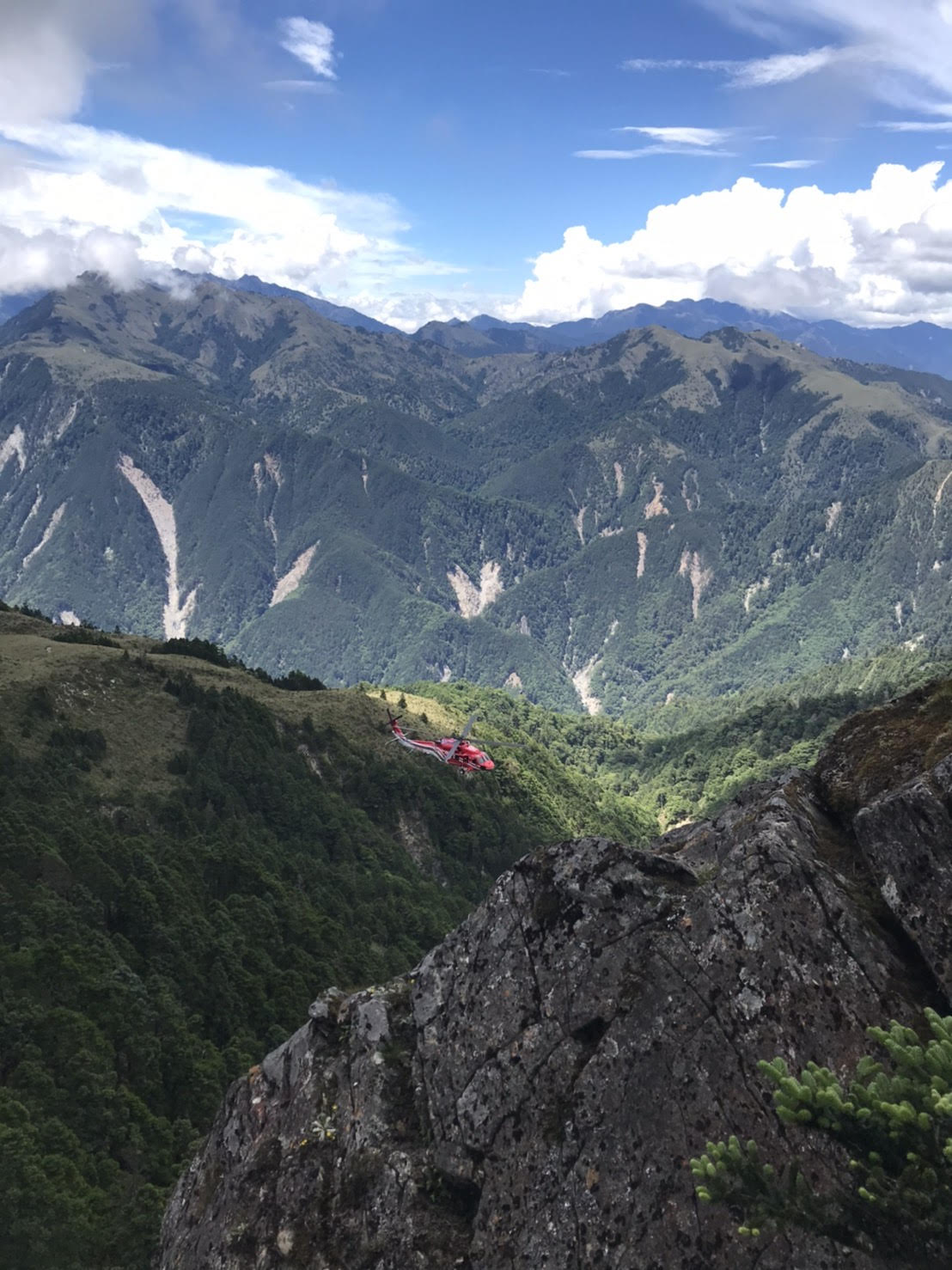 9日一名獨攀單攻的山友,於向陽山主峰附近步道因未專注於行走,不慎偏離路徑滑落近70度陡坡,在臺東林管處、臺東縣消防局及空勤總隊三大隊第三隊合力救援下,終於分別在10及11日克服險峻地形、天候限制,將遇險的山友及因救援不慎摔傷的消防人員,由空勤黑鷹直升機吊掛載送下山就醫,傷者均已獲得適當的醫療協助;臺東林管處再次呼籲,山儘管迷人,但安全是登山唯一的路,希望大家能快樂上山,平安下山。 9日上午臺東林管處接獲向陽山主峰北側附近發生山域事故訊息後,隨即啟動山域救援機制,優先指派嘉明湖國家步道上林管處所屬的山屋管理員前往搜救,到了事故地點附近透過鳴響汽笛及哨聲,試圖尋找受困山友;9日下午5時43分於將近70度陡坡接觸到墜落遇險的山友,經評估傷者意識清楚但無法移動,遂由兩名山屋管理員輪流陪伴傷者,並提供食物,協助傷者維持體溫,等待救援。無獨有偶,當晚11時臺東縣消防隊員前往救援時,一名消防隊員因地形險峻不慎摔傷,所幸兩名傷者均無生命危險,在確認無法由人力直接救援,決定由空勤總隊黑鷹直升機進行吊掛,然而直升機在陡峭地形執行吊掛,極易受地形及氣流干擾,救援任務極其危險,端賴飛航教官膽大心細的研判與專業的飛行技術,才能成功完成將兩位傷者後送醫院治療。 由於山友遇險地點位於海拔近3500公尺高、坡度近70度的石瀑上,同時為顧及搜救人員安全及氣候不穩定等因素,救援工作仍需仰賴現場人員齊心協力克服困難,不論是陪伴傷患的山屋管理員,集結上山趕來救援的消防隊員、空勤總隊飛行機組人員及山下待命夥伴們幾乎徹夜未眠,直至將山友與因救援摔傷的消防夥伴救起的那一刻,才放下心中的大石頭。 臺東林管處表示,登山活動原就有其風險性,特別是獨攀單登行程雖有較大的自由度,但也伴隨著較高的風險,喜愛登山健行的朋友,入山前一定有充分的準備,諸如體能、裝備及山林知識等等,入山後一定要小心謹慎,注意腳下所踩的每一步伐,才能安心欣賞自然美景。「山永遠都在!」,嘉明湖不同的季節都有各種迷人的風采,靜候山友們來訪! 臺東林管處嘉明湖相關訊息,請上臉書搜尋【愛上嘉明湖】粉絲專頁。