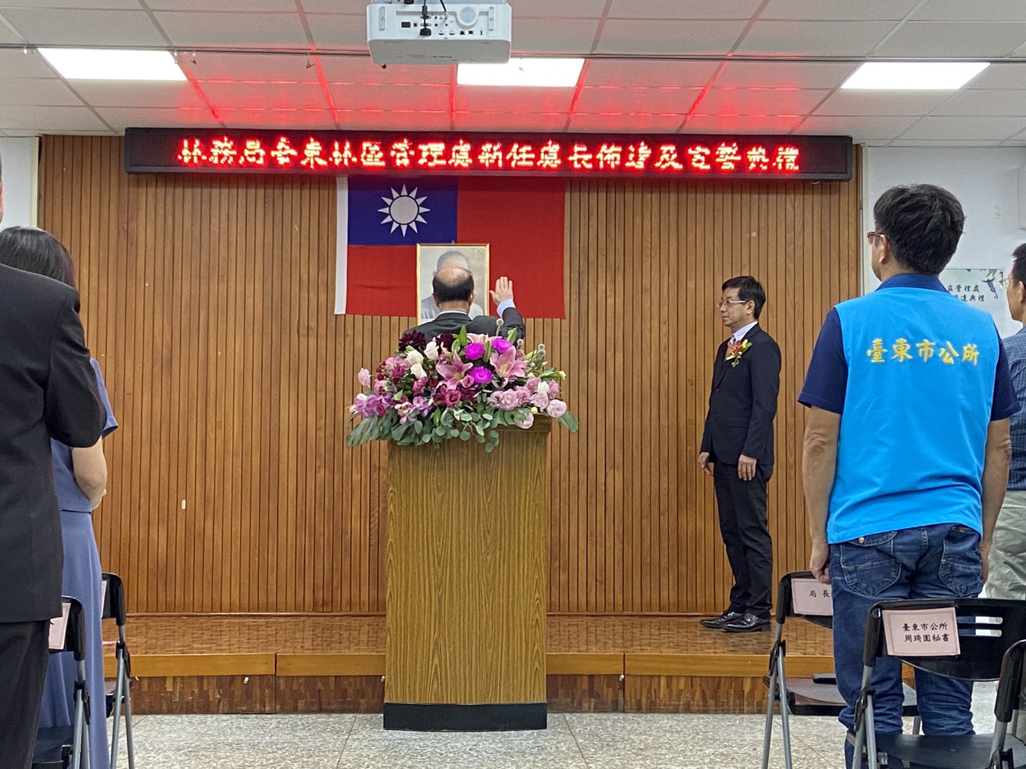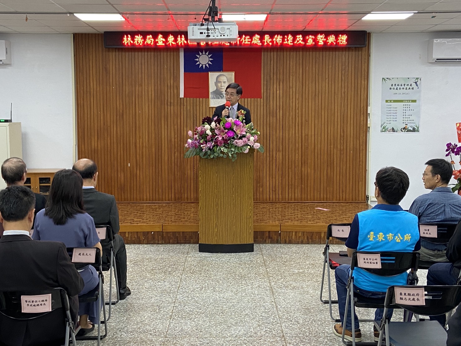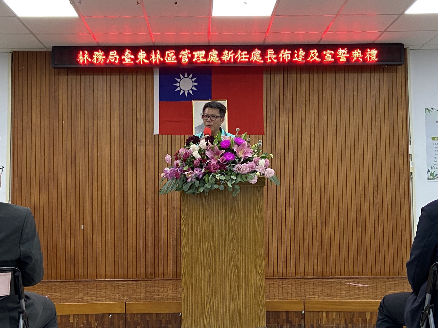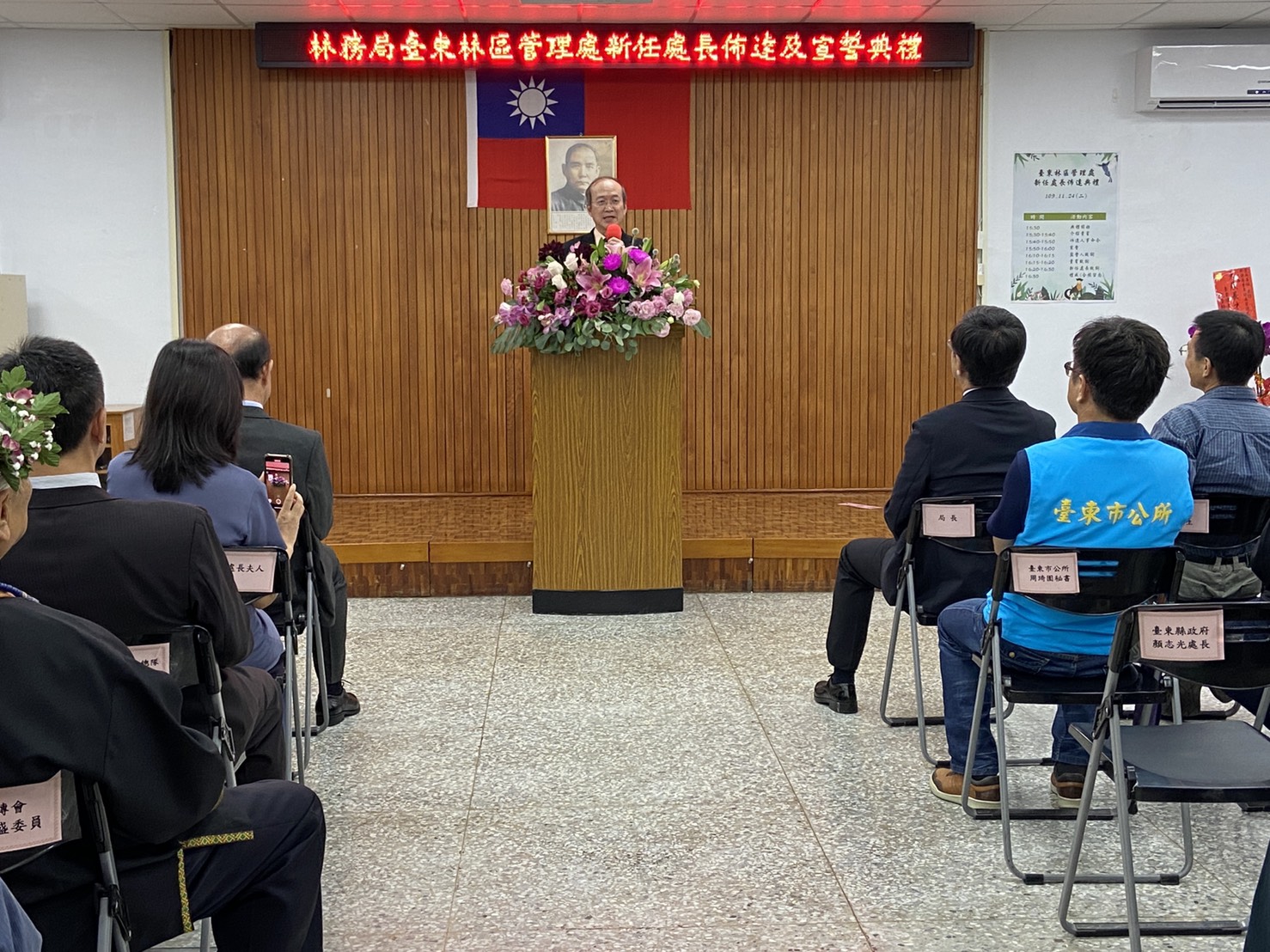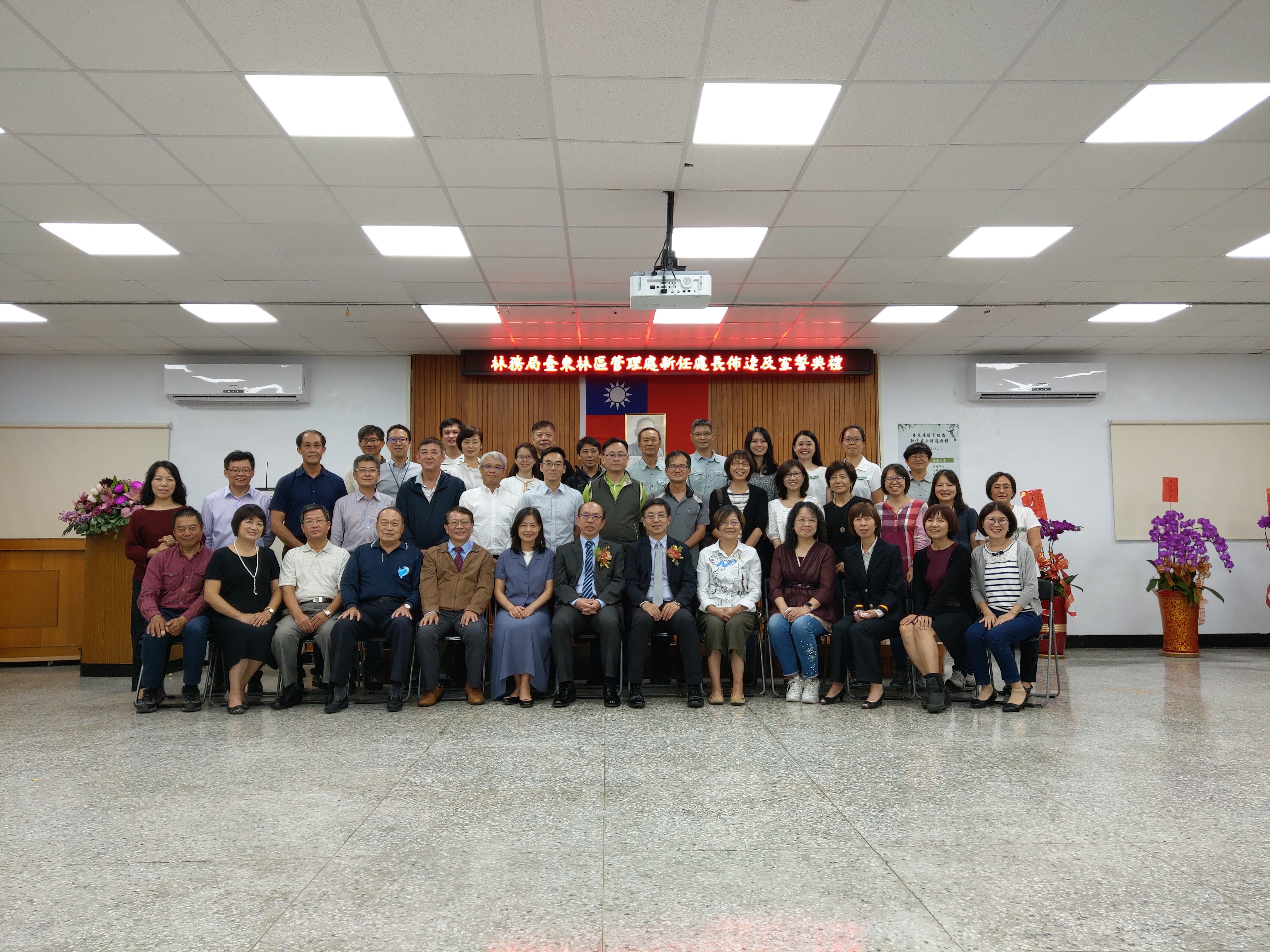 林務局臺東林管處新任處長佈達典禮於今(24)日下午3時30分在林管處3樓大禮堂舉行,由農業委員會林務局林華慶局長親臨佈達。臺東處原任處長劉瓊蓮於109年9月3日退休後,新任處長由該處副處長吳昌祐調陞。 新任處長佈達典禮於24日下午3時30分準時於該處3樓大禮堂舉行,現場出席貴賓雲集,包括行政院東部辦公室洪宗楷執行長、劉櫂豪立法委員辦公室張其旭執行長、王志輝副縣長及縣府團隊、林琮翰副議長及多位縣議員、農委會派駐臺東地區各機關首長代表及在地鄉鎮市長、部落社區夥伴、NGO、學界、農漁會總幹事等計有近80餘位貴賓出席共襄盛舉,祝賀吳昌祐處長上任。 新任處長吳昌祐,國立中興大學農藝學系博士畢業,歷任臺東處技士、技正、課長、林務局簡任技正及臺東處副處長等職,學經歷完整豐富。吳處長除了具備林業及農業推廣相關專長外,並於臺東林管處及林務局服務期間,在各級長官指導下推動及辦理各項林業重點工作如:森林保護、生態保育、人工林經營及國產材產業輔導及國土生態綠網等計畫。吳處長領導、溝通及協調能力極佳,除帶動同仁們在工作上發揮團隊合作外,也積極與中央派駐臺東地區各單位及地方行政機關建立良好跨域合作關係,在社區及部落輔導工作上也著力甚深。相信在吳處長豐富學養及務實作風的領導下,定能在推動臺東地區森林資源經營管理及維護友善森林環境的理念下順利執行各項業務,為實現兼顧生產、生活及生態的「永續林業」目標上,帶領團隊為這片家鄉的森林、土地及共同努力的夥伴們貢獻心力。