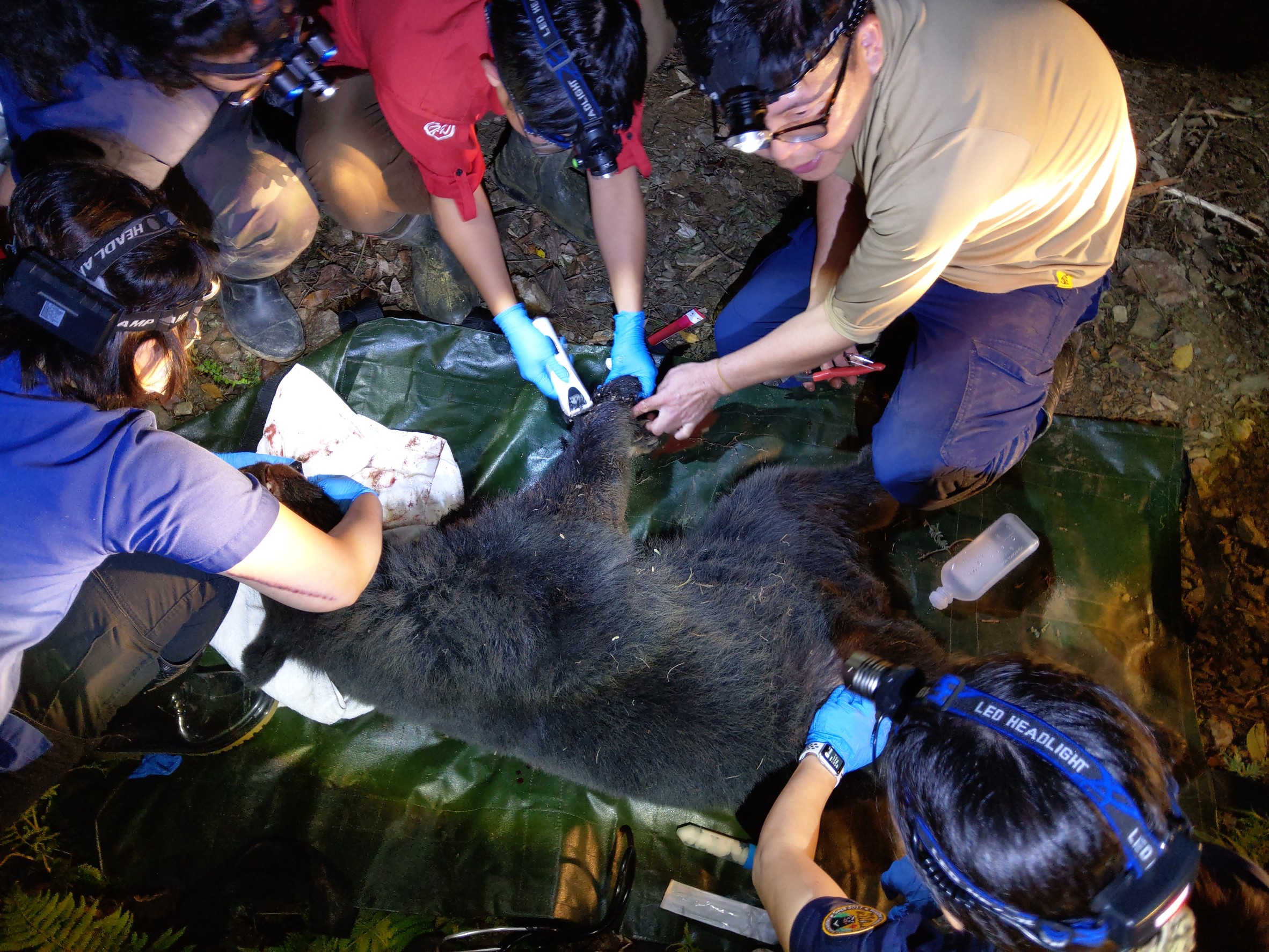 昨(10)日傍晚於臺東縣海端鄉崁頂村,部落周姓族人通報臺東林管處,表示在自家山區工寮附近發現臺灣黑熊受困套索陷阱,急需救援。臺東林管處人員立即偕同野灣野生動物保育協會團隊啟動救援行動,順利於當晚近10時許完成救援,並於今(11)日上午後送至林務局委辦屏東科技大學保育類野生動物收容中心接受治療照養。 臺東林管處表示,該處人員於當晚8時許抵達現場後,確認黑熊受困地點及勘查週邊環境後,與專業獸醫師前進至黑熊受困處展開救援工作;經獸醫師吹箭麻醉後,於現場初步檢視黑熊狀況,為年輕母熊個體,體重約46.5公斤,四肢完整,惟因陷入套索陷阱,右前肢與右臉頰有明顯外傷,經獸醫專業評估後,為避免感染,其傷口需進一步治療,因此臺東林管處決定依照建議,將受傷母熊送往屏科大保育類野生動物收容中心治療及短時間照養,待其完全復原後,即野放至適合之棲地。 周姓族人係為參加臺東處狩獵自主管理計畫的成員,發現黑熊受困即刻循規範流程通報臺東林管處救援;其表示該套索設置目的是為防止山豬危害地瓜、玉米及芋頭等農作物。臺東林管處也建議民眾,若遇有疑似野生動物危害農作情形,可優先向地方政府申請補助電牧器圍網或以精準式獵具防治,緊急時可先行通報地方縣市政府或林管處協助防治,將有助於降低對動物的傷害及誤捕瀕危動物。 臺東林管處處長吳昌祐指出,民眾在第一時間發現野生動物受困時,就能立即通報救援,對瀕危野生動物保育非常重要,林管處感謝周姓族人即時通報;也再次呼籲民眾,倘若發現野生動物受困,務請即刻撥打臺東縣政府1999、林務局0800-000-930等24小時通報專線,讓受傷的野生動物能夠獲得即時救援,為臺灣野生動物保育工作盡一份心力。