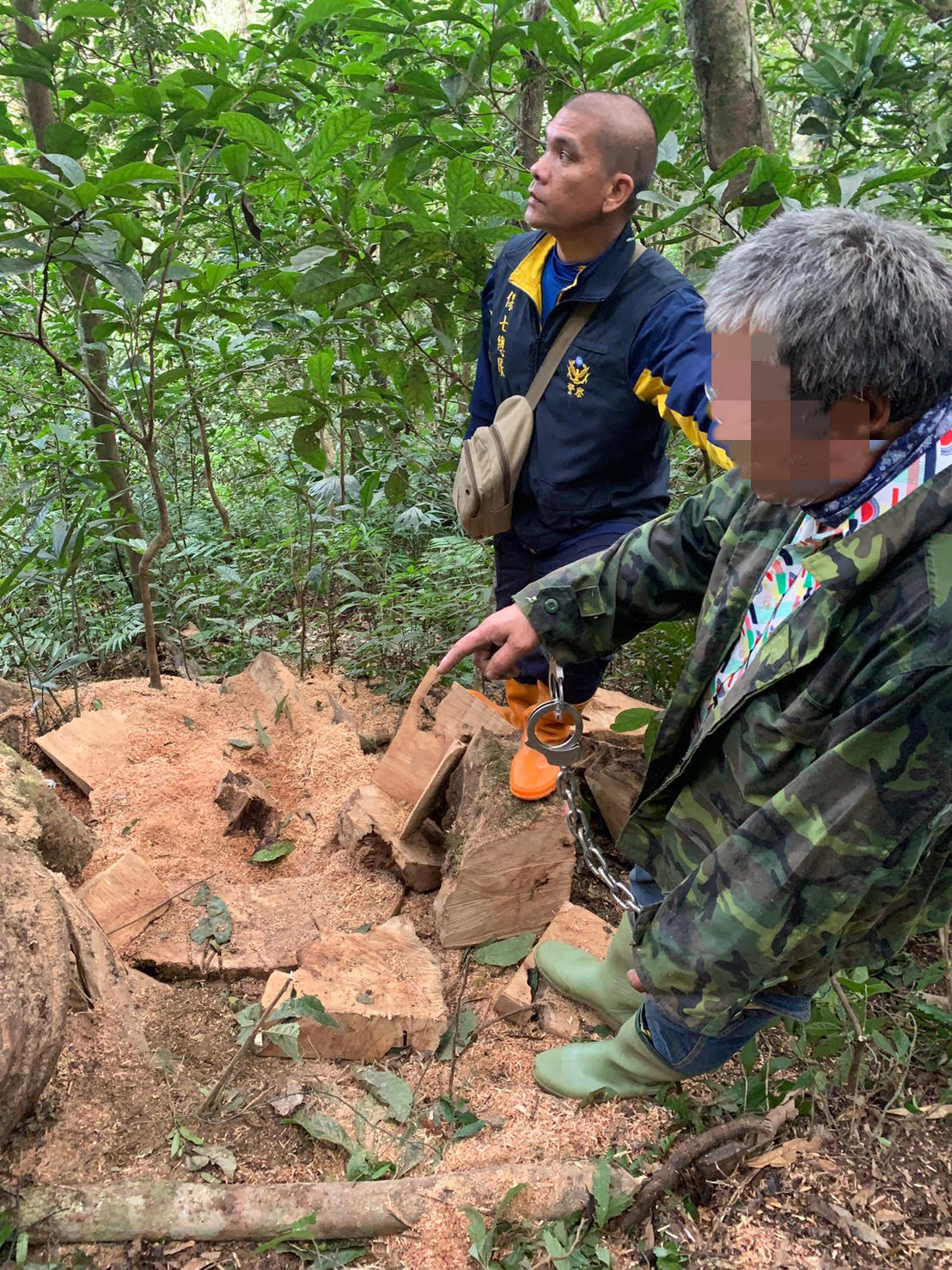 臺東林區管理處與保七總隊第九大隊臺東分隊於寒流過境期間不畏懼山區低溫,合作分組監控及埋伏,昨(20)日清晨於卑南鄉初鹿山區緝獲3名竊取牛樟木的犯嫌,並查獲贓木計0.06立方公尺,全案已移請臺東地檢署偵辦中。 19日下午2時許,知本站森林護管員於初鹿山區執行山林巡護工作時,在山區一處隱密的樹林間發現有機車藏匿,並非一般遊客行徑,由於該區海拔森林間有貴重木分布,護管員研判可能為山老鼠犯案車輛遂立即聯繫保七總隊第九大隊臺東分隊,由該分隊調度警力前往山區埋伏。 經過一夜在寒風中的埋伏監控,終於在昨(20)日清晨5時順利攔獲3輛可疑的機車,警方人員一接近機車就聞到載牛樟木濃郁的香氣,3位嫌犯只好坦承剛從山上鋸切牛樟木搬運下山。森林警察與森林護管員立即與嫌犯至竊取牛樟貴重木的現場定位,確認犯案地點位於臺東事業區第4林班地內,贓木2塊計0.06立方公尺及犯罪工具機車3輛已由保七總隊第九大隊臺東分隊查扣,並將全案依違反森林法、竊盜罪嫌移請臺東地檢署偵辦中。 臺東林區管理處吳昌祐處長表示,此次緝獲竊取牛樟木案件,要感謝保七總隊第九大隊臺東分隊與知本站同仁合作無間,不畏寒風仍認真守護山林。長久以來,本處與保七總隊第九大隊臺東分隊也透過與山村周遭各社區巡守隊執行山林聯防,推動森林資源維護工作成效顯著,未來更期許山林資源能受到更完善綿密的保護。