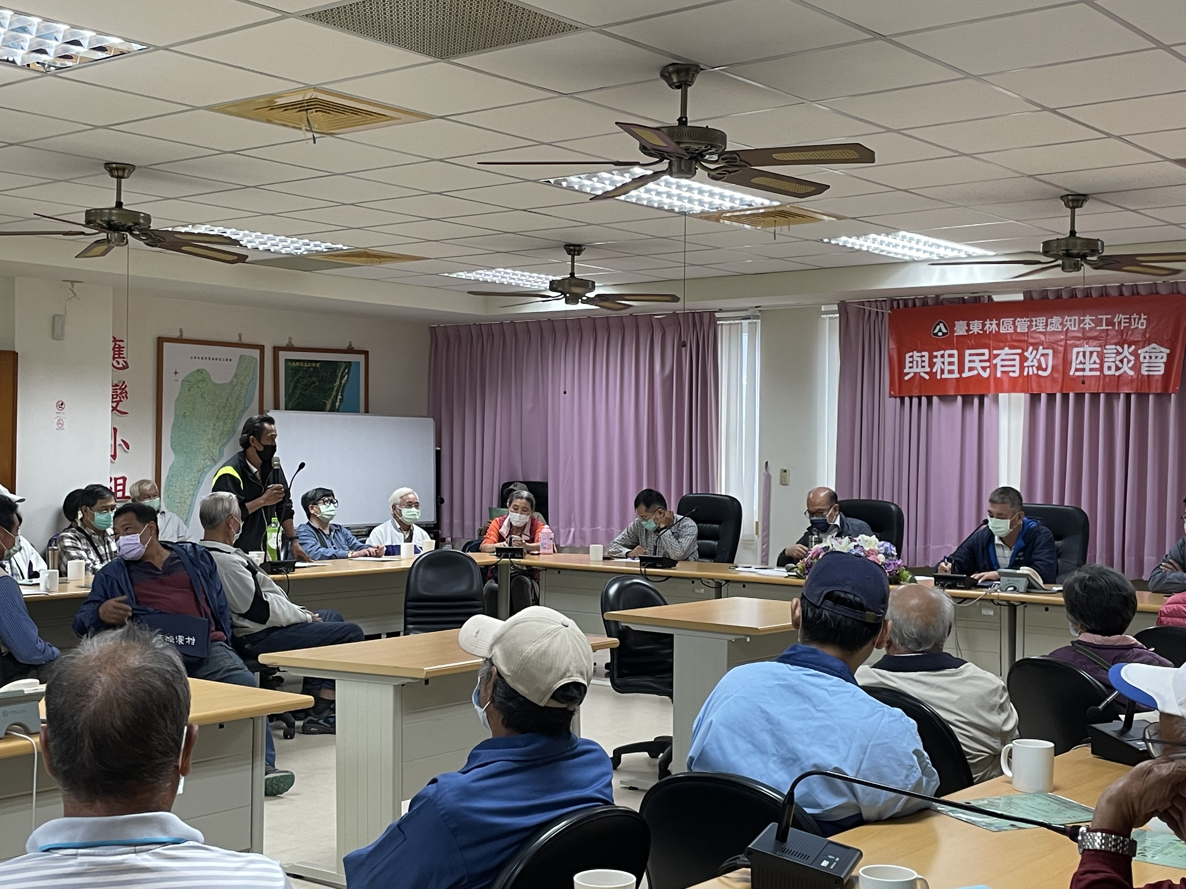 臺東林區管理處知本工作站於本(110)年11月9日辦理第一場次的「與林農有約」座談會,來自於臺東、知本、卑南、太麻里等地計約60名出租造林地承租林農,在氣溫驟降之際仍然出席踴躍。臺東處吳昌祐處長率領林政課課長、政風室主任與承辦人員,暨知本工作站全體同仁於會中聽取承租林農反映及建言;現場除由知本站主辦同仁針對修正之出租造林地工寮興建注意事項及林下經濟、獎勵輔導造林、林業永續多元輔導方案等相關規定及綠鬣蜥等外來入侵種防治工作進行說明及宣導外,同時也藉機詳細回復民眾有關租地造林地苗木補植及引水用地、新建工寮申請等各項提問,現場互動相當熱絡。 現場多位承租林農對於租地內水源取用、相關設施申請及工寮補辦業務提出詢問及疑難,其中有關用水申請部分,由於涉及公共用水權益及相關申請程序需先取得土地使用同意及再向地方政府提送水權申請事宜,現場均由知本站同仁妥善說明回應。臺東處吳昌祐處長亦表示,近年因極端氣候影響屢屢發生供水吃緊的問題,縱使臺東地區雖未發生嚴重缺水現象,但仍提醒與會林農能夠與林務局一起攜手維護山林資源,共同營造健康森林環境及珍惜得來不易之水資源。 另有來自初鹿地區的陳姓林農提及,農委會已於今年9月1日成立「氣候變遷調適及淨零排放專案辦公室」,年底前將舉辦27場全國巡迴座談會,詳細說明調適、減量、農業碳匯、農業綠能及循環農業等面向上的規劃,陳先生建議未來林務局能在「農業碳匯」,為國有林地承租林農爭取加入碳交易平台,同時亦可在機制內透過媒合企業認養或合作,讓林農在營林過程中能夠有機會增加碳稅收益,吳昌祐處長則表示這是一個非常重要且符合實際需求的建議,將會在適當時機將這項建言向林務局反映。 近年來林務局為振興山村經濟及提升林農營林意願,積極輔導持有或承租林業用地的林農夥伴參與林下經濟經營工作,及為加強公、私有林經營管理擬訂之「林業永續多元輔導方案」,鼓勵林農評估整合鄰近地區的林農成立林業合作社的可行性,未來臺東處也將針對有意願參與的承租林農,延請專家協助擬定森林經營計畫提出申請,再透過森林主、副產物的生產與行銷管理等輔導措施及務實的補助作為,提供最直接及必要的協助與支持,透過前述方案的推動,不僅期望能增加林農投入營林期間的經濟來源外,亦能振興國產材生產及挹注國內木材市場需求。 最後,吳昌祐處長在座談會結束之前,向與會承租林農表達,林管處現場同仁將會持續以積極服務及便民利民的心態,陪伴及輔導承租林農,在能力所及及合於規定的範圍內全力協助解決林農所面臨的疑難,更期盼與林農攜手合作營造友善健康的森林環境,共同創造多元的森林服務價值。
