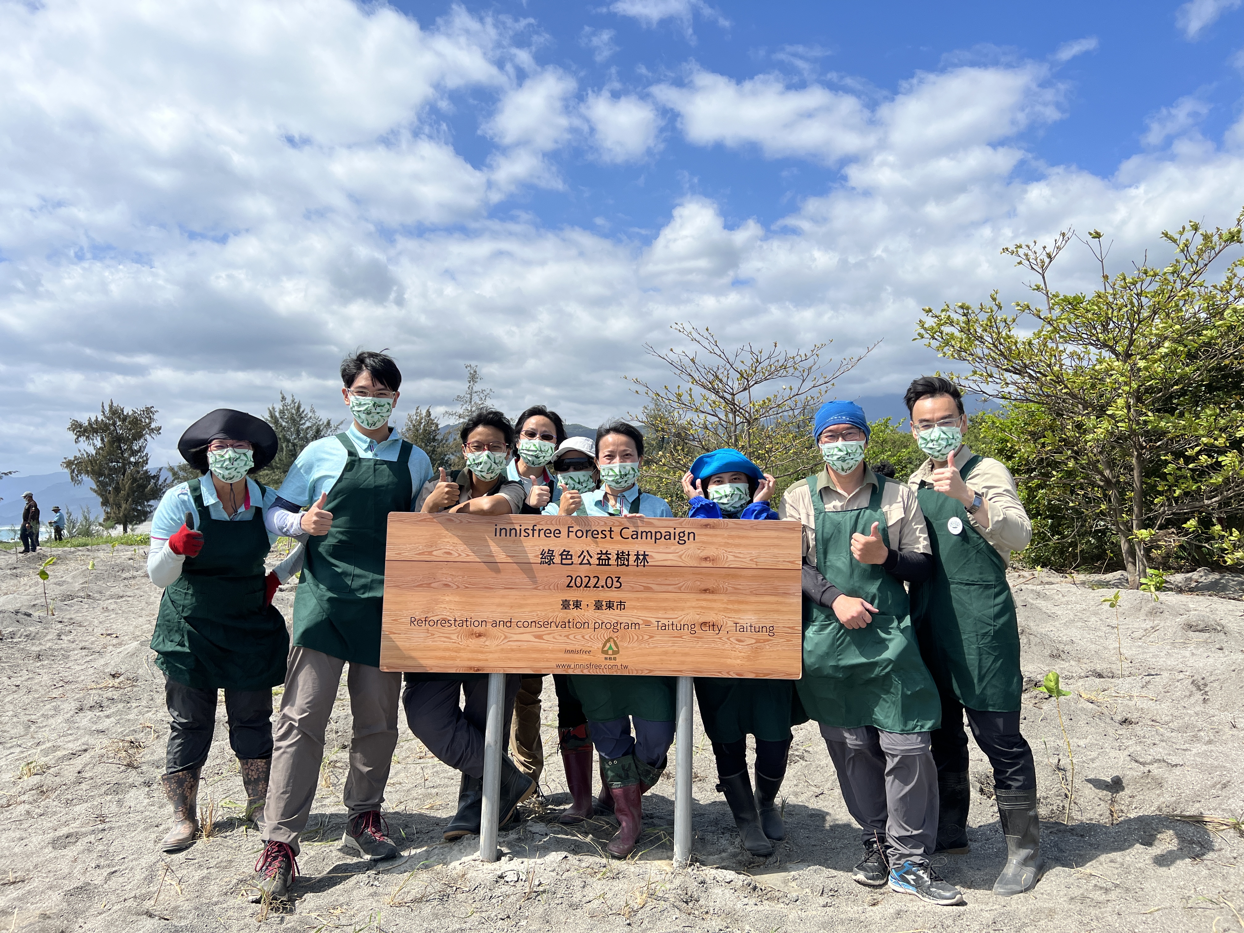 愛茉莉太平洋集團(旗下innisfree美妝品牌)與臺東林區管理處於111年3月8日臺東第2517號保安林辦理「企業認養植樹活動」,希望透過植樹認養方式喚起大家重視環境,並配合2022植樹月「森活的碳循」主題,種植原生種苗木來保護臺東海岸,也發揮固碳護地球效益。 愛茉莉太平洋集團迄今創立77年,長期參與各式各樣社會公益活動。其中innisfree為旗下自然主義美妝品牌,秉持「取之於自然,用之於自然」的理念,除產品包裝採環保材質外,也推出innisfree悅詩風吟環保手帕活動,號召消費者一起使用手帕代替紙巾的環保習慣,作為一個環保的美妝品牌, 除提倡減塑外,也在全球各地進行植樹活動,持續對造林付出努力。 今年為innisfree第6年與臺東林區管理處合作,以認養造林方式展現對環境保護的行動力,本次植樹認養活動地點為林務局臺東林區管理處第2517號保安林,位臺東的海岸第一線,近年來臺東海岸因全球暖化及颱風等因素,造成海岸線逐漸內縮,為能保護海岸居民屋舍街道不受風沙侵擾及颱風暴潮危害,海岸林營造是非常重要。本活動栽植原生林木以建立海岸綠帶,發揮防風定砂、防止土壤流失之功能,一起守護臺東海岸。 臺東林區管理處表示,隨著溫室效應及氣候變遷問題日益嚴重,林管處除持續投入海岸造林及撫育工作外,也希望有更多的民眾及團體能挺身而出參與植樹及認養活動,為臺東建造一道綠色海岸線,也為地球降溫及固碳。