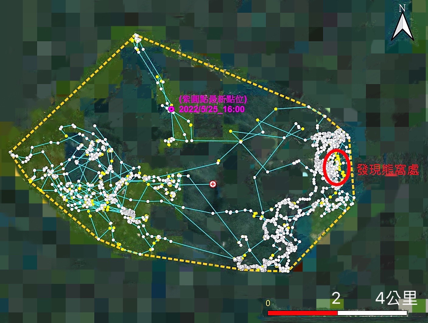 崁頂小公熊Umas去(110)年8月中旬在崁頂部落族人的祝福下,順利野放返回森林,一轉眼已逾9個月了,到目前為止,林務局臺東林區管理處仍持續透過牠所配戴的發報頸圈接收衛星定位,以蒐集牠在森林裡生活的動態資料。由足跡點位顯示,Umas活動範圍大、健康情形推測良好,目前棲息在一處無人煙的原始林內。 前(109)年底,年輕的小公熊Umas在臺東縣海端鄉崁頂村被村民發現受困於套索並身中三槍,經救傷團隊緊急搶救後送屏科大手術及照養,Umas身上雖留下部分殘缺,整體康復情況仍達野放標準,於去年8月間野放。臺東林管處日前派員實地調查Umas棲息的森林,找到推測不只一隻熊留下的痕跡。林管處表示,確認牠「別來無恙」,相關同仁皆感到十分欣慰。 野放後Umas的活動模式和廣原黑熊Mulas相似,大多在白天活動,少數時間在夜間移動。今年1月份氣溫較低,牠的活動頻度也降低,許多時間待在溪溝環境,雖然少了部分的右前肢,但從野放後9個月的期間軌跡分析,不難看出Umas行動頗為矯健、翻山越嶺不斷探索適合的棲地,移動過程中最陡峭的地形坡度估算約達70度,活動範圍海拔介於500到2300公尺之間,範圍約48平方公里。 跟著Umas足跡踏查 深入了解棲地環境 Umas頸圈回傳定位成功率為88.3%,臺東處藉由頸圈回傳的點位,派員進入Umas生活的森林,踏尋牠走過的路徑,在牠白天活動密集區、夜間過夜區和非活動的地區進行系統性的植群調查,除了確認Umas會有習慣運用熟悉的環境活動及棲息外,調查期間也找到Umas連續幾天的過夜點,是一棵有血藤攀附的山黃麻,樹上發現可能是Umas為夜間休息做的巢窩,樹幹也明顯可見新舊不一的黑熊爪痕;爪痕有大有小,判斷此區除了Umas外,可能還有其他黑熊在此活動。未來臺東處仍將持續評估Umas所配戴的衛星定位頸圈電池電量狀況,結合棲地環境分析及植被調查資料,提供未來臺灣黑熊現場保育工作實務操作的參考。 值得一提的是,Umas當年經由崁頂部落熱心族人周先生通報救傷而槍下逃生,野放後,也曾回到崁頂部落周邊山區,但並未接近聚落,人與熊相安無事當鄰居,也讓研究人員鬆一口氣。 近年臺東地區發現臺灣黑熊蹤跡通報案件顯有增加,臺東處已於近年與海端鄉、卑南鄉合作建立臺灣黑熊通報平台,也於臺灣黑熊出沒熱點、鄰近部落或社區加強辦理人熊遭遇宣導及通報課程;同時亦積極於熱點部落推廣改良式獵具,降低非目標物種的受困機率。臺東處呼籲,如發現受傷待援的野生動物,請即時通報縣民專線1999、林務局24小時專線:0800-000-930或就近聯絡林務局各工作站,讓我們一起為保育野生動物攜手努力。