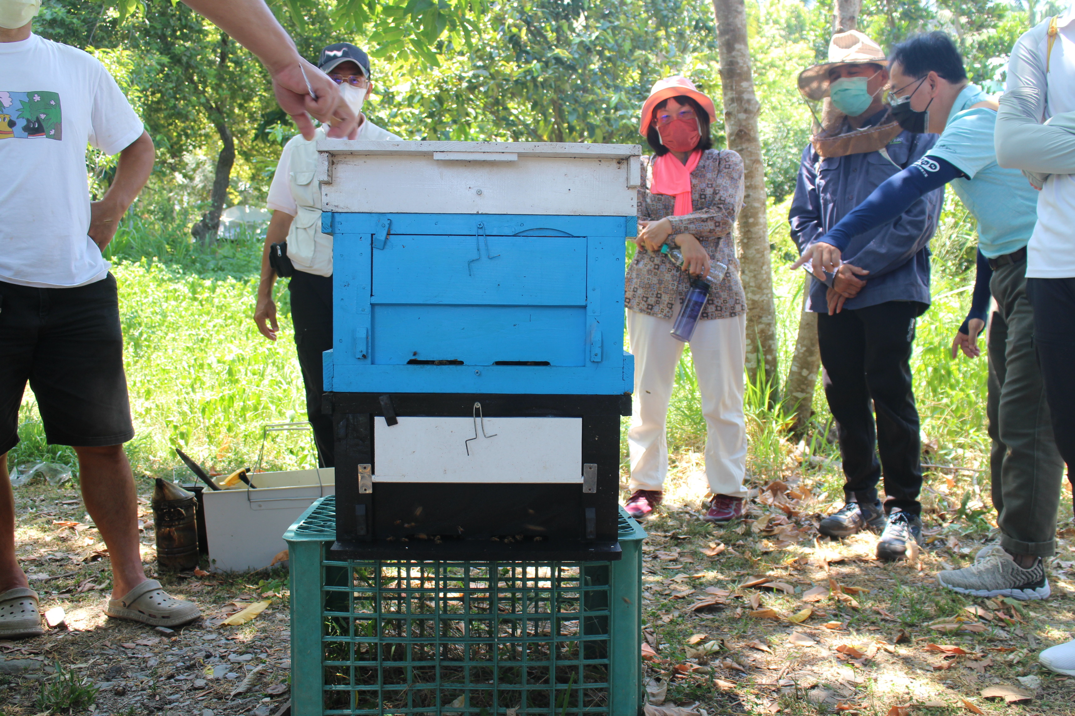 臺東林管處28日在利嘉村舉辦林下養蜂實作課程,共有林管處同仁及其他有意實施林下經濟的山村居民,約20人參加。林務局自108年起推動林下經濟,開放林地可申請林下蜂產品等項目。臺東林管處亦持續辦理養蜂課程,供輔導同仁及轄內山村、部落居民提升技術能力。卑南鄉利嘉社區參與林務局社區林業計畫多年,致力於森林保護工作,是社區參與保育的典範,亦是近年起步參與養蜂產業的重要基地。 本次授課的利嘉村村長林肯毅,曾於109年間帶領多名學員參加林管處當時舉辦的養蜂課程,事後並長期實際投入及整合該村養蜂產業,目前利嘉村養蜂規模已達約80箱,年產量約500瓶(每瓶700公克)。如今已以講師角色,將所學與本身數年操作心得擴大推廣。今日課程包括養蜂的基本認識、器材介紹與實際操作、養蜂成果分享及行銷、蜜源環境規劃經營等,提供學員全面向的認識。 臺東處處長吳昌祐表示,林下養蜂的操作形式與規模有相當的彈性,但都需要相當的技術基礎,有心投入者及輔導人員可以持續精進學習。臺東處未來仍將繼續規劃相關進階課程,也將擴及其他如段木香菇、臺灣原生山茶種植等林下經濟項目,提供山村居民、部落人士或其他有興趣民眾做為技術學習資源。