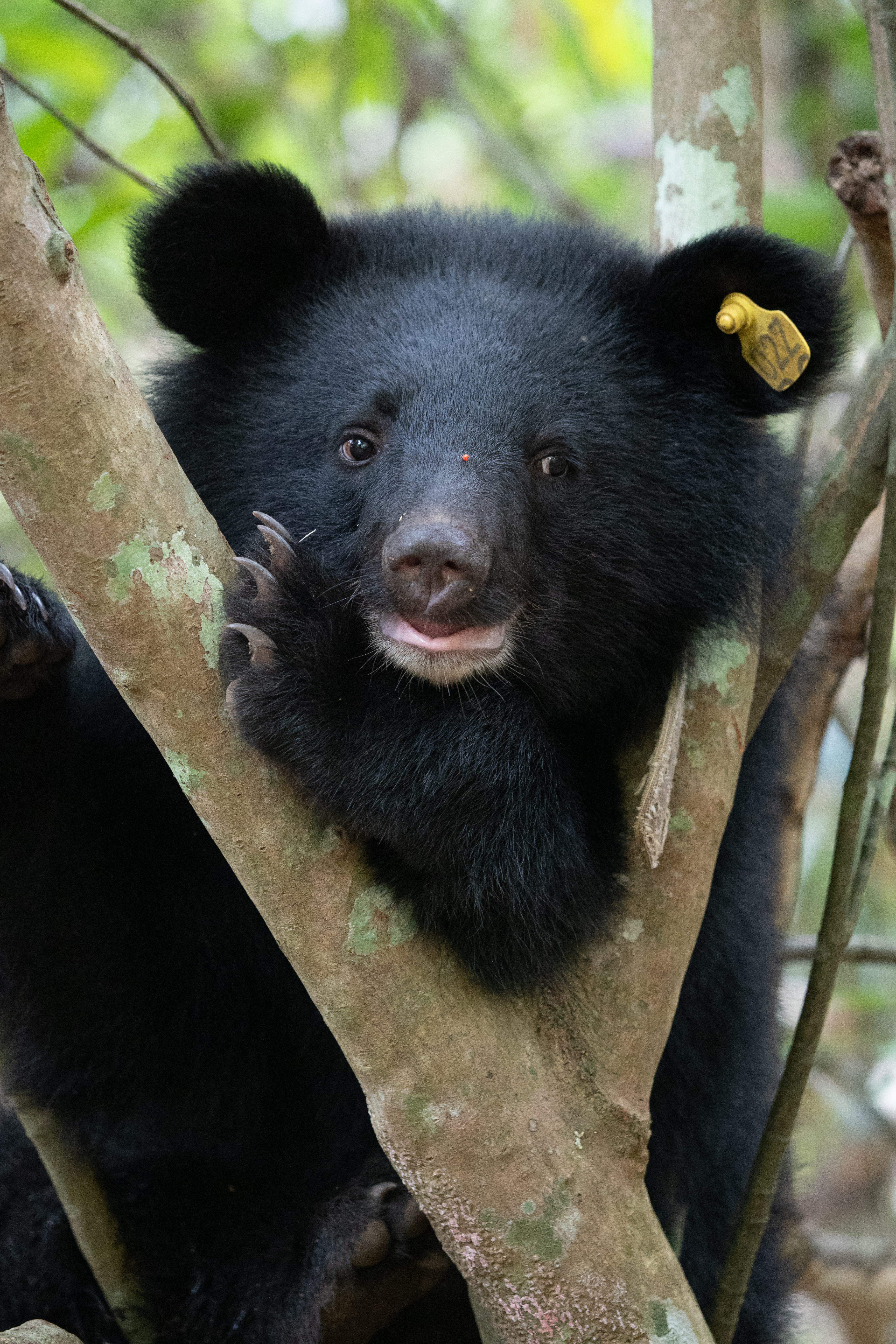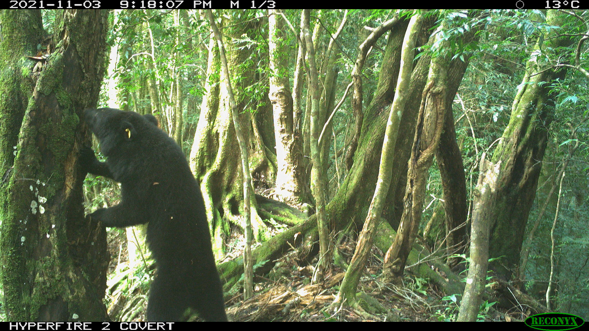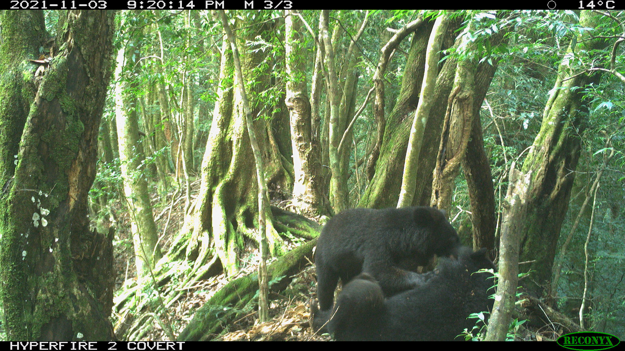 臺東林區管理處日前回收設置於國有林班地內的紅外線自動相機影像,驚喜發現已經長大的廣原小熊Mulas的身影,身旁還多了一隻黑熊同伴,這是從109年5月16日Mulas野放回森林家後,首度再次拍攝到牠的身影,著實令林務局驚喜與感動。 野放時還是1歲出頭小女孩的Mulas,野放後展開在中央山脈森林全然自由的熊生,迄今已有2年4個多月。雖然臺東林管處在野放時曾為牠佩掛能監測蹤跡與活動情形的衛星發報頸圈,但在13個月後的去(110)年10月,也透過衛星發訊,讓配掛在牠脖子上的追蹤頸圈自動脫落。 雖然Mulas從此不再受到束縛,但臺東林管處也無法再透過追蹤設備掌握牠的動向,只能在牠先前主要的活動熱點架設多處紅外線自動照相機,希望有機會從自動相機記錄的影像再看到牠的身影。 日前臺東林管處同仁例行性上山巡護,在換取自動相機記憶卡判讀影像資料時,從畫面中驚喜發現有著耳標的Mulas身影,已約2歲半的Mulas體態結實、毛髮亮麗,不時挖掘樹洞探尋食物、左右張望、倚靠在樹幹搔癢時還不慎滑倒,十分呆萌可愛。更令團隊人員欣喜雀躍的,是看見牠在山林裏與同伴嬉戲、玩耍的珍貴畫面,療癒了所有人員的工作辛勞,直呼「被融化了」。 通報電話: 1999縣市民專線 0800-000-930林務局專線 花東地區亦可撥打089-862368野灣野生動物保育協會 整理影像的臺東林管處同仁說:「當下透過牠左耳上的黃色耳標,辨識出畫面中的黑熊就是Mulas時,一剎那心中激動不已,從收容、照養到野放的情景,再次浮現腦海,不禁紅了眼眶⋯⋯。」另一個畫面看到Mulas坐在大樹底下摩擦背部,不小心滑倒還用手掌撐了一下樹幹,動作如牠年幼時一樣可愛。臺東林管處說,Mulas摩背的行為可能是為了止癢,也有研究認為此種行為也可能藉此留下氣味吸引異性或與其他黑熊個體溝通的功用。 同一相機也記錄到另一隻臺灣黑熊入鏡,Mulas與牠友好地相互輕咬、拍打及嬉鬧,看起來互動良好,不過由影像尚無法確定其性別;而由另一處監測點位拍攝到的連續性靜態影像中,則拍到Mulas追逐這隻黑熊同伴,以及兩隻黑熊一前一後經過攝影鏡頭的畫面。透過這些影像,可以發現Mulas在山林裡非常適應,還交到了「熊熊好朋友」。 臺東林管處表示,拍攝到Mulas身影的棲地環境,也經由前往巡護的同仁進行了初步植被調查,發現週邊林木組成以鬼櫟、青剛櫟、小梗黃肉楠、大葉石櫟、短尾葉石櫟及柃木等混生天然闊葉林為主,食物來源豐富多樣。除了植物以外,臺灣黑熊也特別喜歡取食蜂蜜,或挖掘腐木尋找昆蟲幼蟲來補充蛋白質,此次拍攝到Mulas挖掘樹洞畫面的紅外線相機,也是考量該處有野蜂築巢,研判可能會吸引臺灣黑熊受蜂蜜吸引前來才設置的;此處的攝影機也曾拍攝到臺灣水鹿、山羌等野生動物,顯示此處食源充足,十分適合臺灣黑熊棲息。 這次Mulas野外生活影像再現,從牠的行為活動,更有助於了解臺灣黑熊對森林環境的棲地利用方式,臺東林管處也會持續針對Mulas的潛在重要棲地進行影像監測,期盼能再累積更多Mulas的觀察行為,促進對臺灣黑熊生態的了解。 臺東林管處也特別提醒,民眾若目擊臺灣黑熊,或發現臺灣黑熊受傷、受困、失親,請保持安全距離並立即通報,即使是誤捕臺灣黑熊,只要及時通報並協助救援,就不會被究辦。
