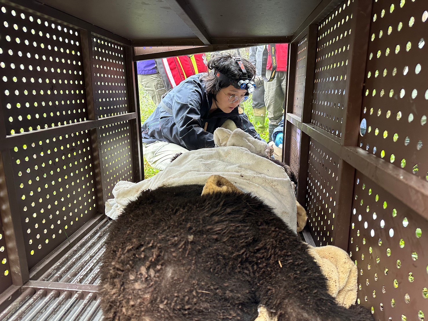 今(112)年4月上旬林務局臺東林管處接獲海端鄉錦屏部落族人通報,錦屏林道發現有臺灣黑熊受困套索陷阱,林管處隨即邀集臺東縣政府及野灣野生動物保育協會馳援,順利將受困黑熊解救脫困,惟因右前肢遭套索緊束有部分嚴重發炎,已進行局部截肢及清創等處理,目前傷口癒合良好。 臺東林管處也表示,黑熊經救援後,現場發現的套索等相關證物也立即移交警政署保安警察第七總隊第九大隊偵辦,了解是否有人刻意獵捕黑熊,因配合偵查,始在今日連同黑熊復原與後續規劃一併對外說明。 該隻受困黑熊經野灣野生動物救援中心詳細檢查,判定為亞成公熊,目前癒後食慾極佳,整體健康情況良好,體重已恢復到與剛收容時體重約48公斤。臺東林管處表示,接續希望在評估無虞後野放,目前已逐步增加野生食物供應比例,近期也將邀請專家學者就其活動狀況、短期照養及野放期程進行研商。 臺東林管處也特別感謝通報及協助救援的部落族人,將會依林務局「臺灣黑熊生態服務給付計畫」致贈獎勵金;同時也會持續進行野生動物救傷通報宣導、推廣使用改良式獵具及宣導社區部落參與「臺灣黑熊生態服務給付計畫」,期盼透過公私協力,維護瀕危物種存續。 臺東林管處再次呼籲,若發現野生動物受困,請即刻撥打臺東縣政府縣民服務專線1999、林務局24小時通報專線0800-000-930,動物就能獲得及時救援。若有農民或部落獵人不慎誤捕或誤傷保育類野生動物,只要立即通報、協助救援,就不會被究責。