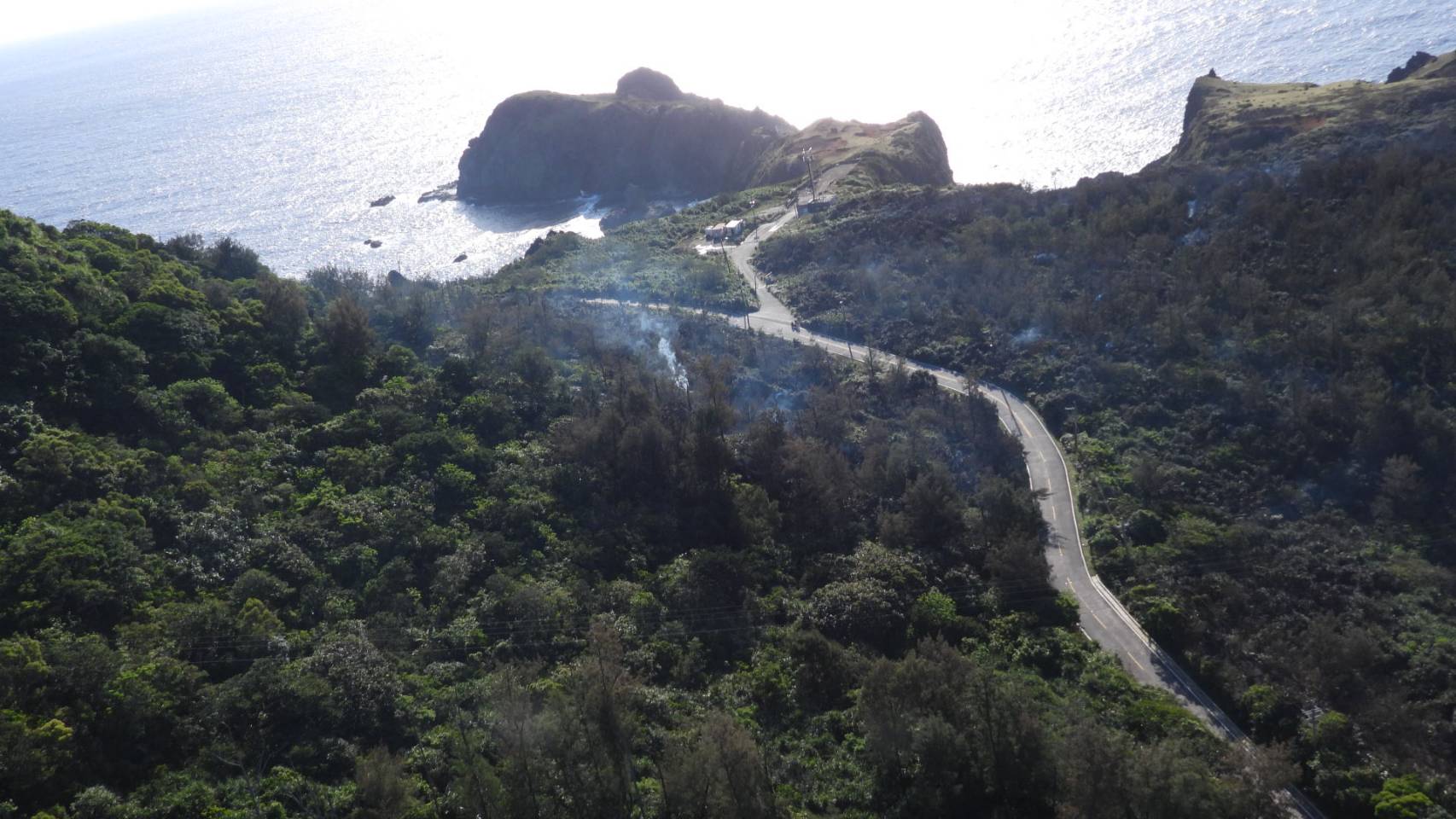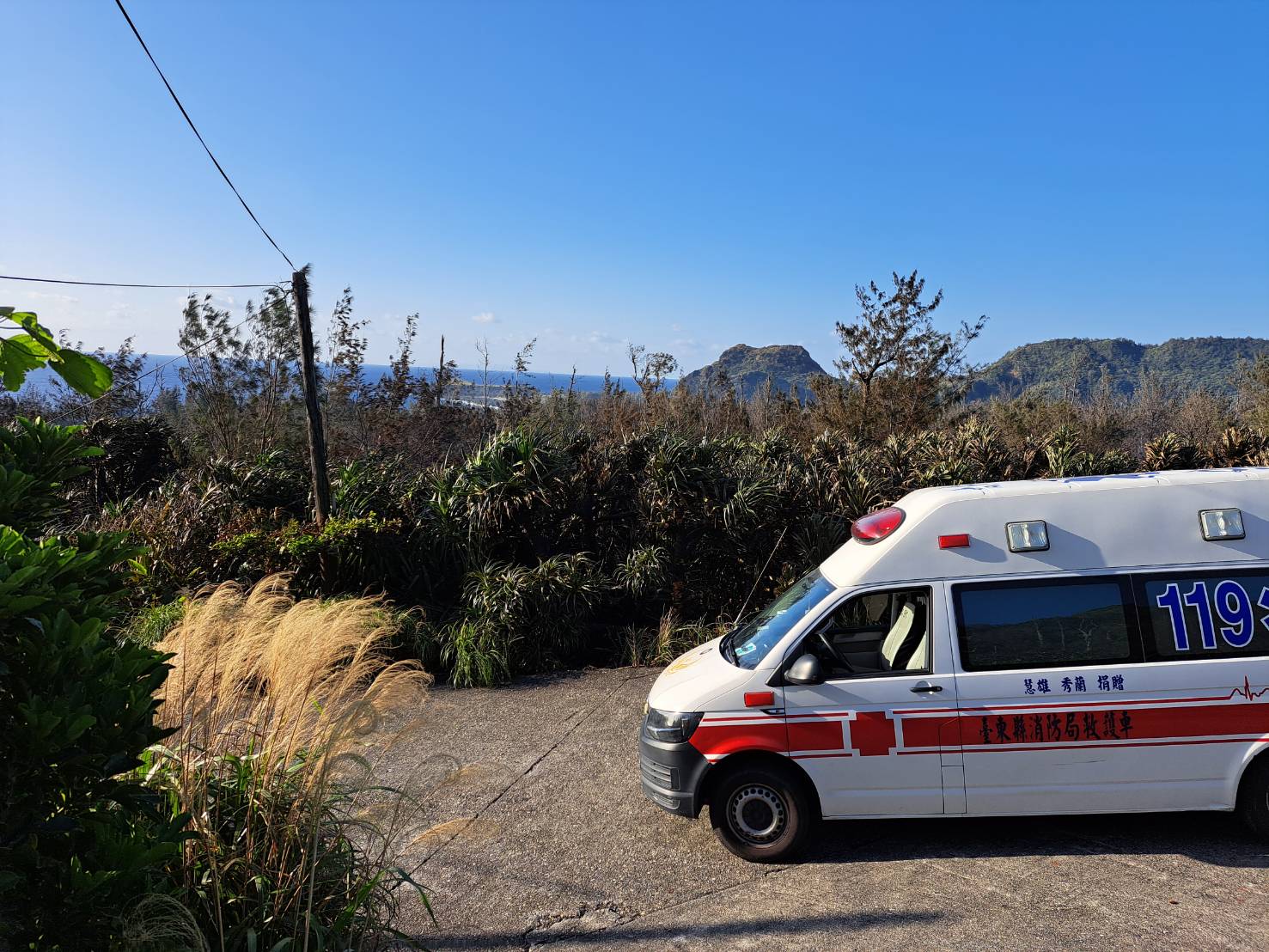 昨(5)日傍晚近17時,綠島鄉公所通報綠島環島公路10公里處(約環島公路可眺望哈巴狗、睡美人眺望點鄰近)第2530號保安林地發生森林火災,經民眾通報後,綠島鄉公所立即動員當地公所人員、消防隊、義消、海巡人員及機場消防隊計15人,消防水車2輛及救護車1輛前往現場滅火,晚間在強烈落山風的吹襲下,火勢一度延燒造成路樹倒伏、環島公路交通暫時中斷。
