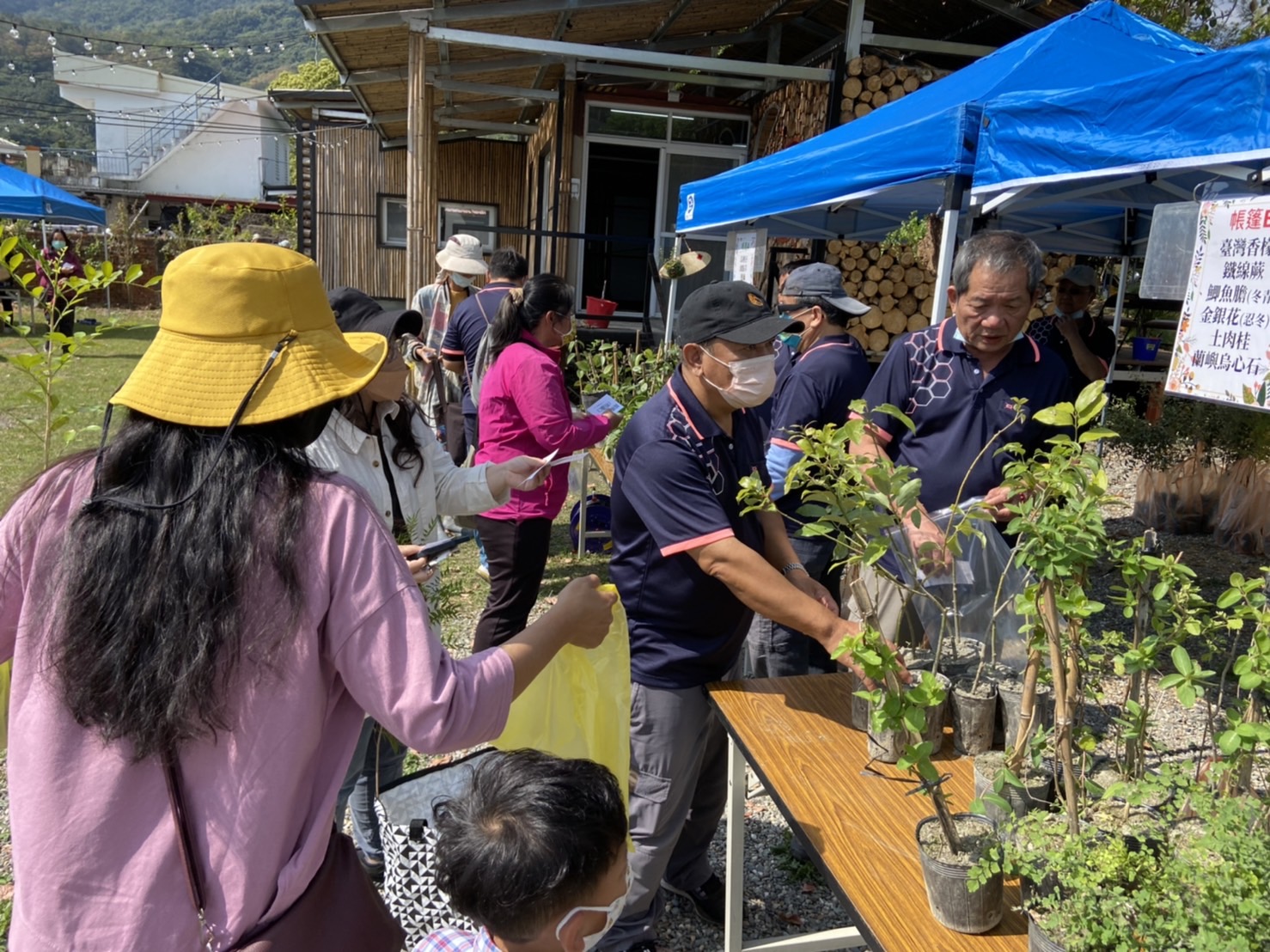 植樹活動結束後,10時在武陵國小校側門辦理贈苗活動,來自延平鄉及鹿野鄉的民眾耐心排隊,聽完贈苗辦法及贈送苗木的特性後,依序拿發票兌換領苗單,換取想帶回家綠美化的苗木,無論是原生百合、都蘭山金石榴、毬蘭、臺灣香檬、土肉桂、毛柿等,全是臺東處精選的臺灣原生種植物,非常適合居家環境種植。