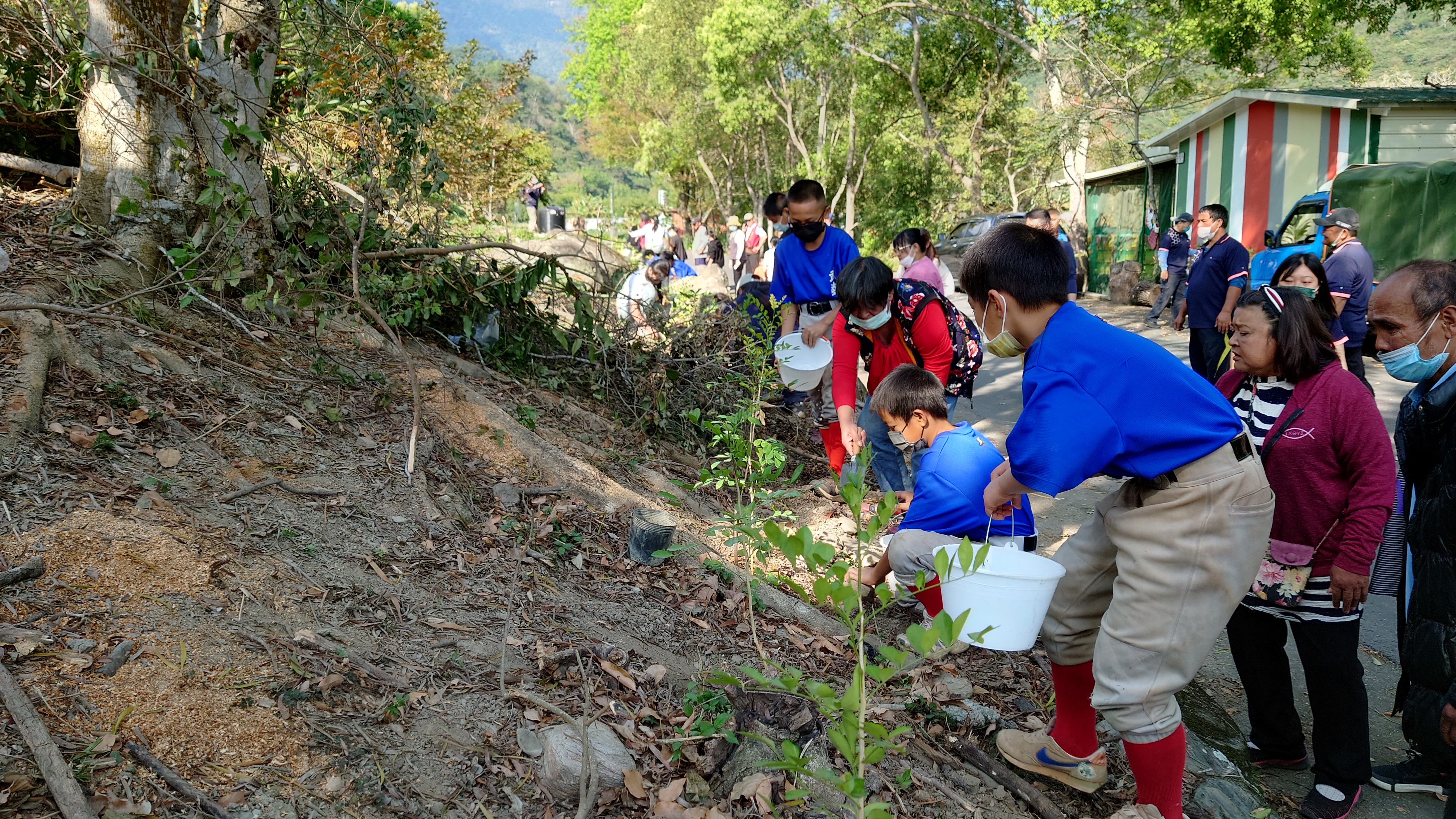 植樹活動由校長胡琢偉主持,在林管處關山工作站主任莊瓊昌講解植樹步驟後,關山站同仁、學校師生及部落老人家大手、小手一起種下青剛櫟、鬼櫟、無患子、七里香、愛玉等苗木。不僅僅只是為這片美麗的校園種下植栽,也為布農族的民俗文化種下傳承,期望苗木長大健壯,營造濃濃的布農景觀。