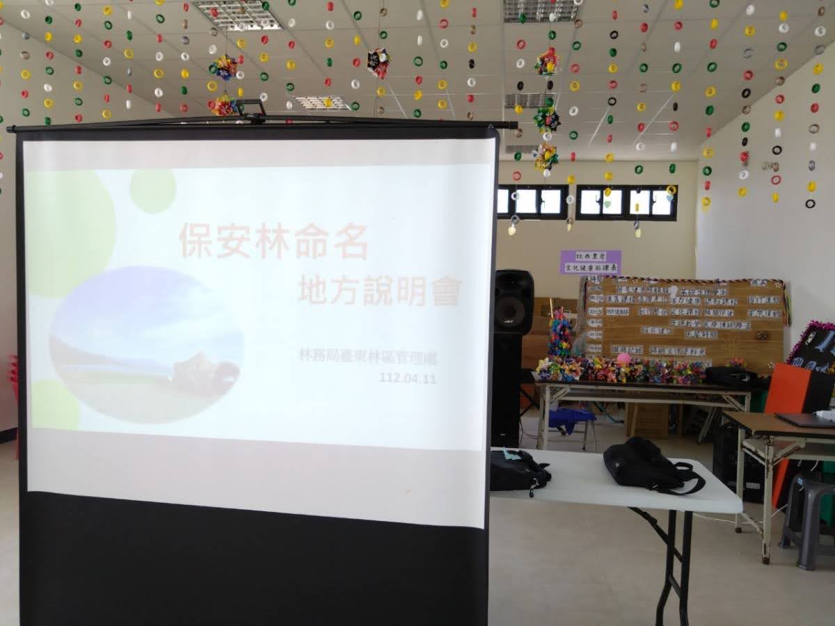 林務局為提升社會大眾對於保安林的關注,推動以保安林所在地的傳統地名、具歷史故事意義的名稱或慣稱等來做為保安林的稱呼,希望除了制式數字編碼外,也有貼近在地的稱謂。臺東林區管理處所轄成功鎮境內第2512號漁業暨風景保安林是本次保安林命名策略的辦理對象。為了讓在地民眾瞭解保安林命名策略的內容,臺東林管處與成功工作站同仁在成功鎮三仙里活動中心辦理地方說明會,邀請美山、比西里岸、基翬等部落居民共同參與,並有成功鎮鎮公所阿美族語吳明道老師、鎮民代表陳婕妤小姐、三仙里張慧珍里長到場協助,參與民眾對於家園周邊的保安林在地稱呼,進行熱烈討論,也相當踴躍提供傳統族語稱謂。