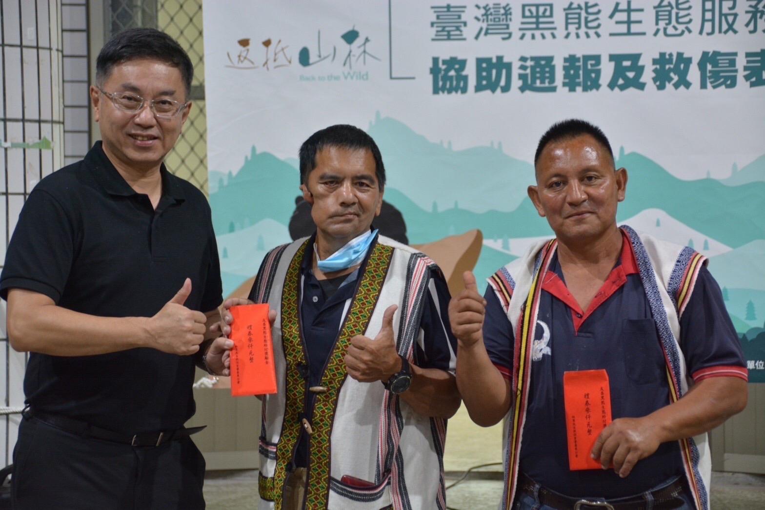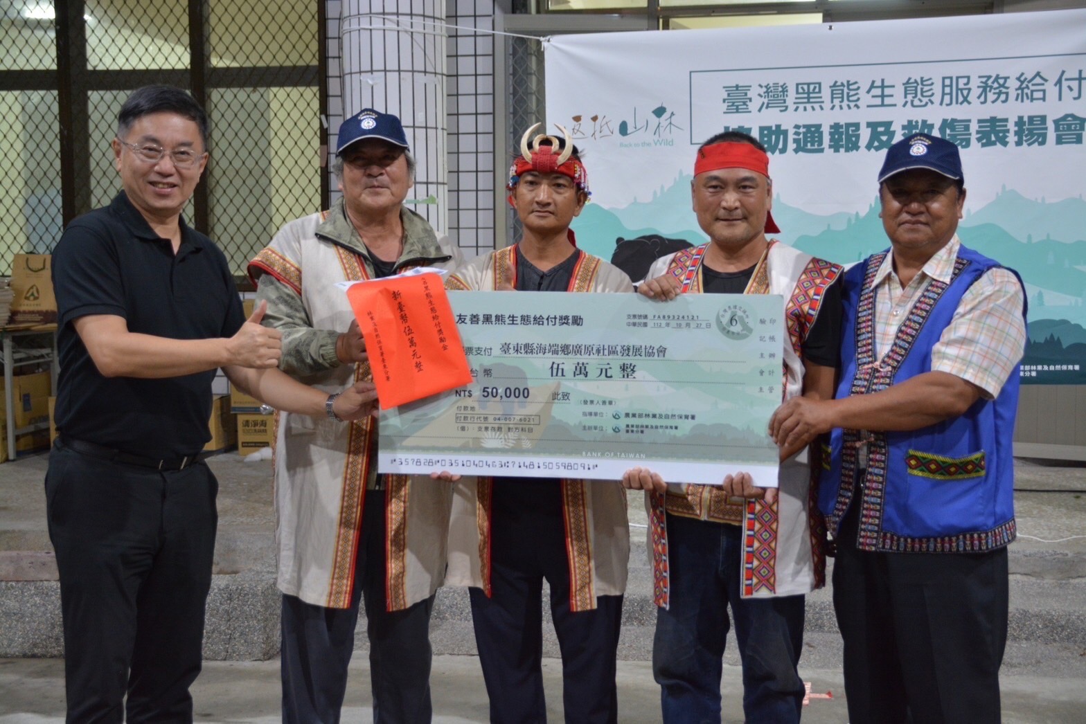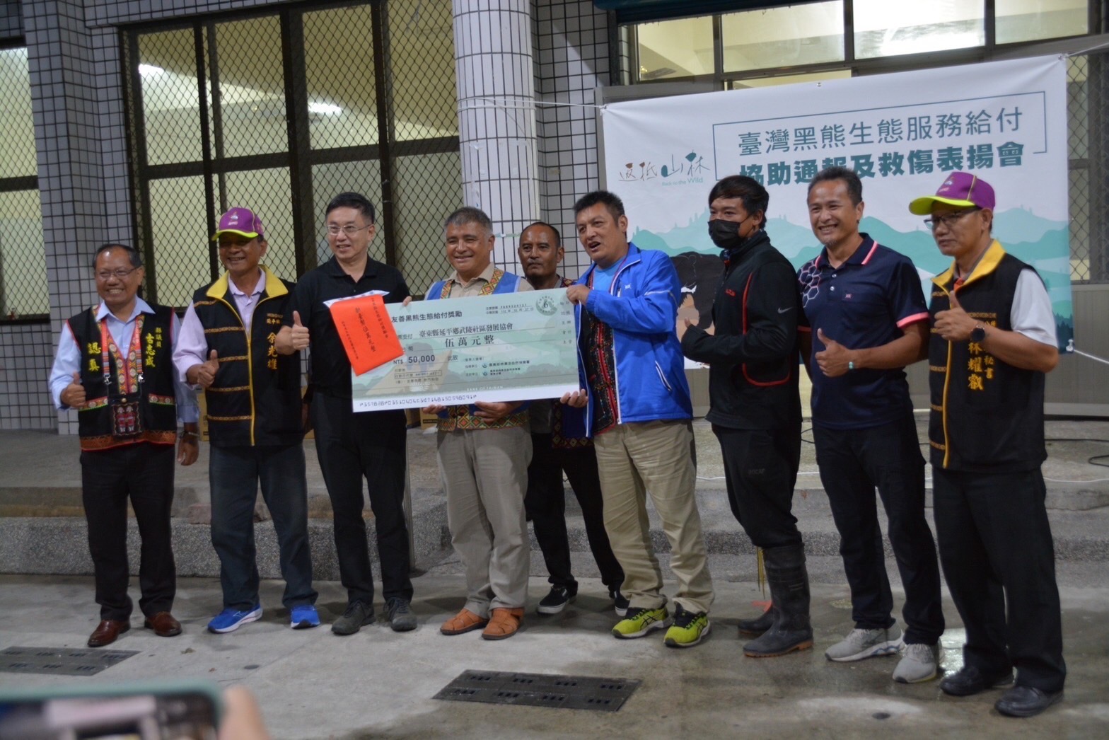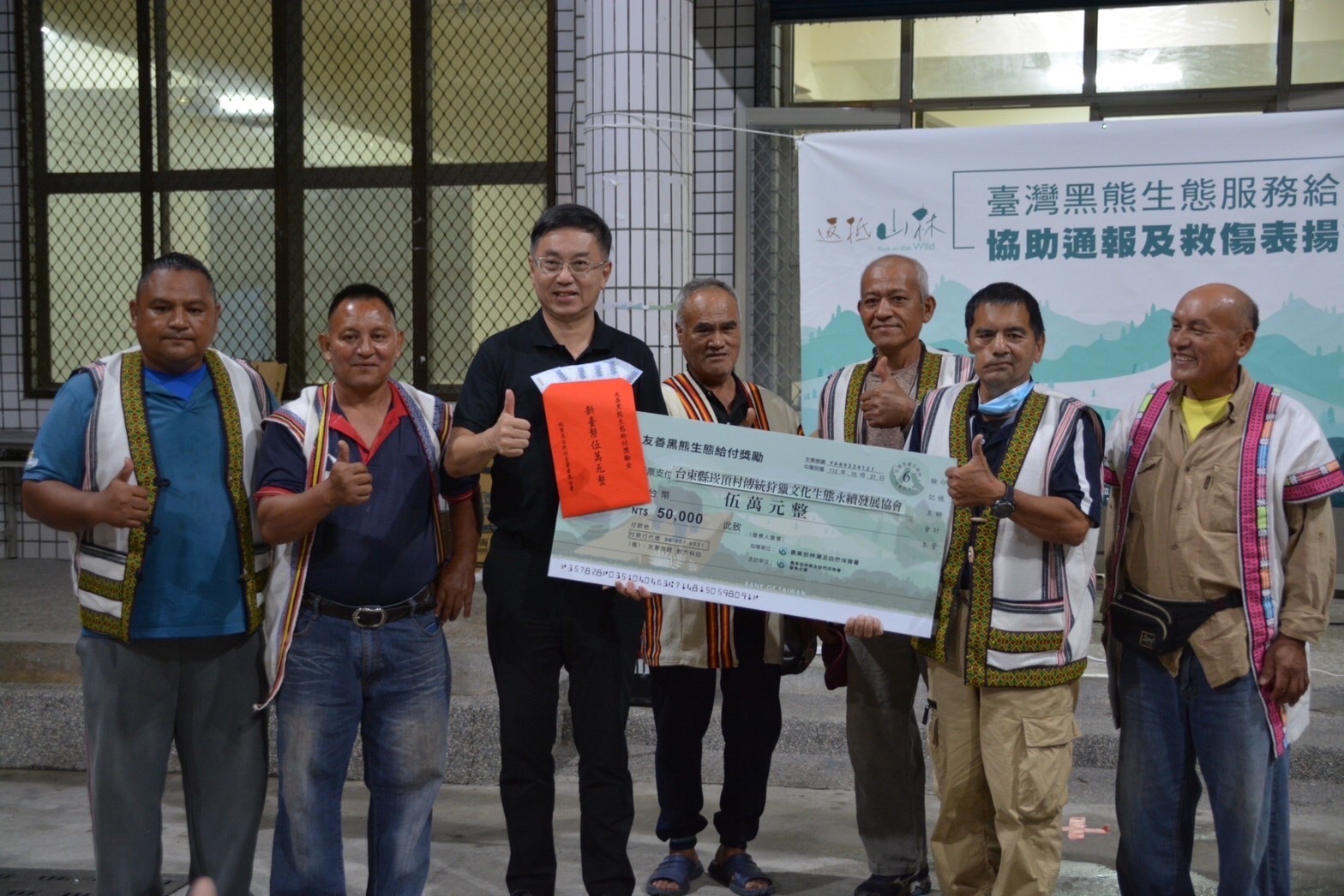 臺東海端鄉與延平鄉今年以來黑熊頻頻出沒,在地部落族人與政府協力投入保育行動,無論是棲地巡護、發現通報、協助救傷都積極參與,甚至在黑熊傷癒野放後,還協助執行生態監測,成為臺灣黑熊保育最堅實的第一線。 林業及自然保育署署長林華慶與該署臺東分署長吳昌祐,特別於昨(27)日下午到海端鄉表揚多位為黑熊保育熱心付出的族人,也頒發獎勵金感謝參與臺灣黑熊棲地巡守的部落組織,以及協助救傷醫療的野灣野生動物保育協會團隊,海端鄉胡金至鄉長、延平鄉鄉長余光雄、海端鄉代表會古天來主席、延平鄉邱文俊代表會主席、在地張全馨嵐、古志成等位議員、村長以及部落族人近120人出席見證。 林業保育署臺東分署吳昌祐分署長表示,這次除了表揚熱心通報及協助救傷黑熊的7位崁頂及紅石部落族人,參與臺灣黑熊生態給付計畫並架設自動相機拍攝到黑熊影像的崁頂、廣原、桃源及武陵村巡守團隊也獲頒獎勵金。其中崁頂村團隊是臺東地區參與計畫後通報黑熊救援的首例;而廣原村團隊則是全國第一個主動協助黑熊(里高萬)野放後生態監測任務的部落組織。 而今年10月上旬,適逢海端鄉第20屆全國布農族射耳祭活動時,2位崁頂村傳統狩獵文化生態永續發展協會成員,發現獵場有臺灣黑熊出沒,隨即通報林業保育署臺東分署,並自主暫停狩獵活動,靜待黑熊遠離獵場。為感謝部落族人的警覺與妥適因應,臺東分署也首度頒發族人友善黑熊專案獎勵金。 會中也由野灣野生動物保育協會獸醫師,說明經部落通報獲救的兩隻黑熊接受治療及復原的現況,將通報救傷的成果及貢獻與族人分享。目前仍在野灣照養的這兩隻黑熊,將在傷癒並評估無虞後進行野放。 林業保育署署長林華慶除了向族人深深感謝,也表示黑熊保育除了關注黑熊族群存續,也要同時照顧比鄰而居的部落族人,更要落實社區保育精神,讓山村成為保育黑熊的第一線,才能真正達到永續目標。林業保育署推動的生態服務給付措施,可降低居民對黑熊的負面刻板印象,更能鼓勵山村部落轉而與政府共同守護山林。 臺東分署也進一步表示,近年來臺東縣海端、延平及卑南鄉境內臺灣黑熊出沒頻傳,該分署積極邀請黑熊出沒熱區鄰近部落,參與臺灣黑熊生態服務給付計畫,目前已有5個社區協會及59位部落夥伴參與棲地巡守、監測、移除不明陷阱及協助保育宣導工作;而短短4個月內,即已有4組協會夥伴,於巡護區域拍攝到12筆黑熊影像,成果十分豐碩。透過監測影像拍攝的位置,除可初步研判臺灣黑熊的棲地範圍,部落族人亦可在第一時間察覺黑熊接近部落或社區周邊的蹤跡,不僅能適時做好人熊遭遇及食物管理等因應措施,也可以避免再度發生入侵案件。 臺東分署說明,林業保育署的臺灣黑熊生態服務給付試辦計畫,獎勵項目包含社區巡護監測與入侵自主通報兩部分,巡護監測給付係由在地部落社區成立巡守隊,巡護棲地熱點、移除不明獵具、協助通報救援及宣傳換發改良式獵具等工作,每年每隊最高可核發6萬元獎勵金;巡守範圍內拍攝到黑熊影像,每次發給5萬元獎勵金,每年以2次為限。 自主通報獎勵則為鼓勵民眾若發現疑似黑熊入侵畜(禽)舍等個人場域,立即通報經勘查確認,且配合將吸引黑熊食物確實移除或妥善管理,每場域發給獎勵金3千元;若再配合架設自動相機持續監測,再核發5千元獎勵金。針對突發的黑熊受困及友善黑熊作為之民眾或組織,也會視情節專案給予適當獎勵。 臺東分署呼籲,如民眾發現黑熊受困,請即刻撥打臺東縣政府縣民服務專線1999、林業保育署24小時通報專線0800-000-930,或就近聯繫在地各分署所屬工作站。倘誤捕臺灣黑熊,只要立即通報、協助救援,就不會被究責。