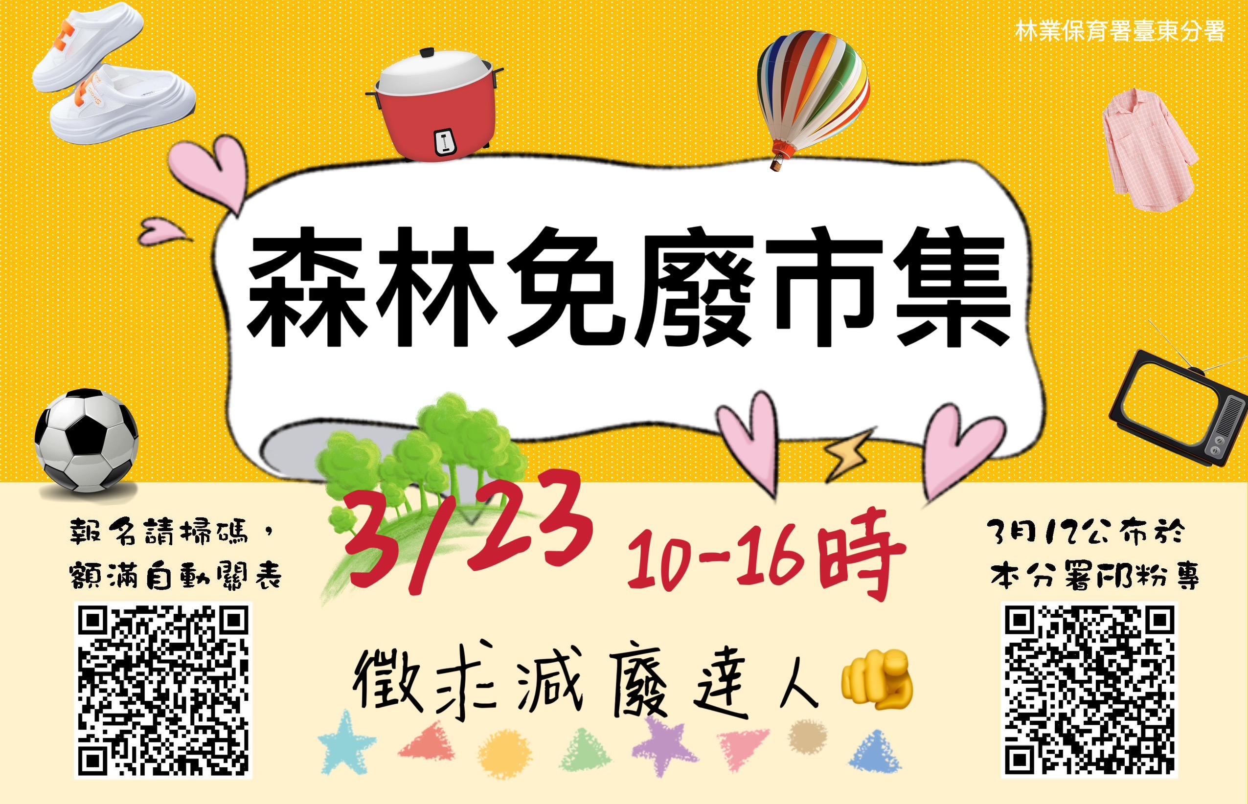 林業保育署臺東分署微型免廢二手市集徵求減廢達人