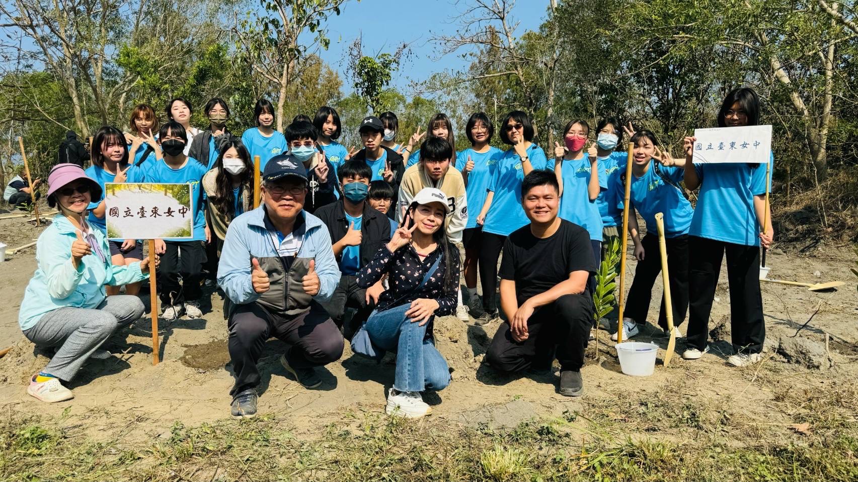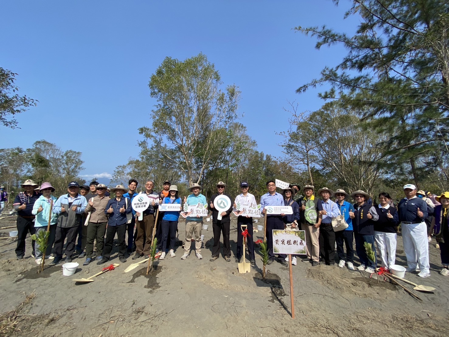 今(16)日臺東縣政府、林業保育署臺東分署合辦的113年度植樹月區域植護樹及森活市集活動在臺東森林公園盛大登場。現場除主辦單位首長及所屬同仁外,包括立法委員黃建賓、臺東女中王垠校長臺東縣警局梁東山局長等多位嘉賓蒞臨。在主辦單位臺東縣政府王志輝副縣長、農業處江慧卿處長、林業保育署臺東分署吳昌祐分署長的陪同下,臺灣臺東地方法院、陸軍臺東地區指揮部、國立臺東女中、慈濟基金會、法扶基金會臺東分會等團體60餘位好夥伴一起在森林公園裡,種下蘭嶼肉豆蔻、瓊崖海棠等原生樹苗,一起為臺東集點樹,期待樹木長大提供綠蔭也增加碳吸存、提供野生動物生態廊道。