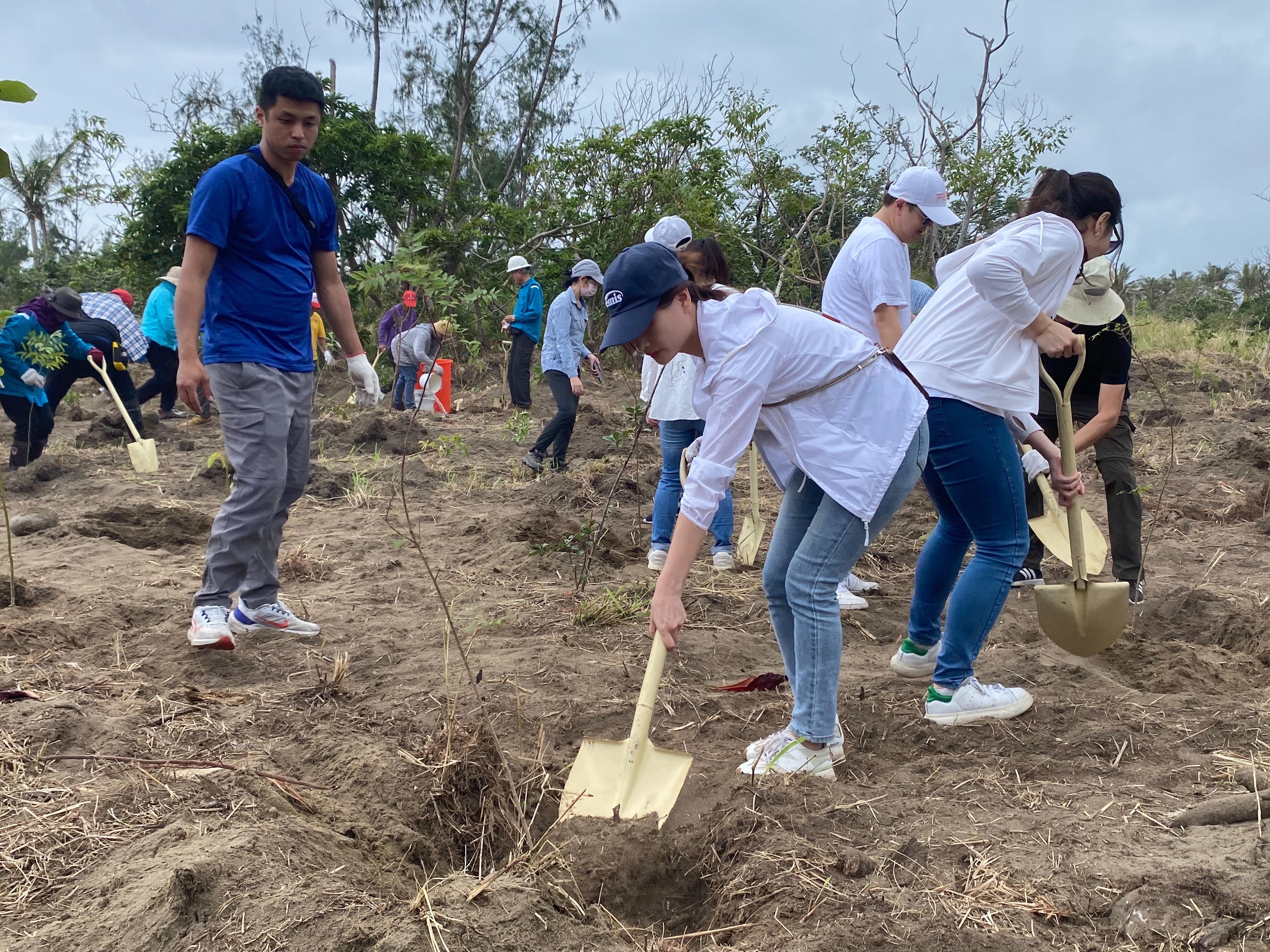 活動當天,臺東分署人員、innisfree員工、巴阿尼豐部落居民及國家森林調查監測志工共同參與,攜手種下多種臺灣海岸原生樹種,不僅增強海岸林的防風定砂功能,亦營造更健康的生態環境。此外,參與者在植樹後隨即投入淨灘行動,透過公私協力,進一步維護並強化海岸生態。