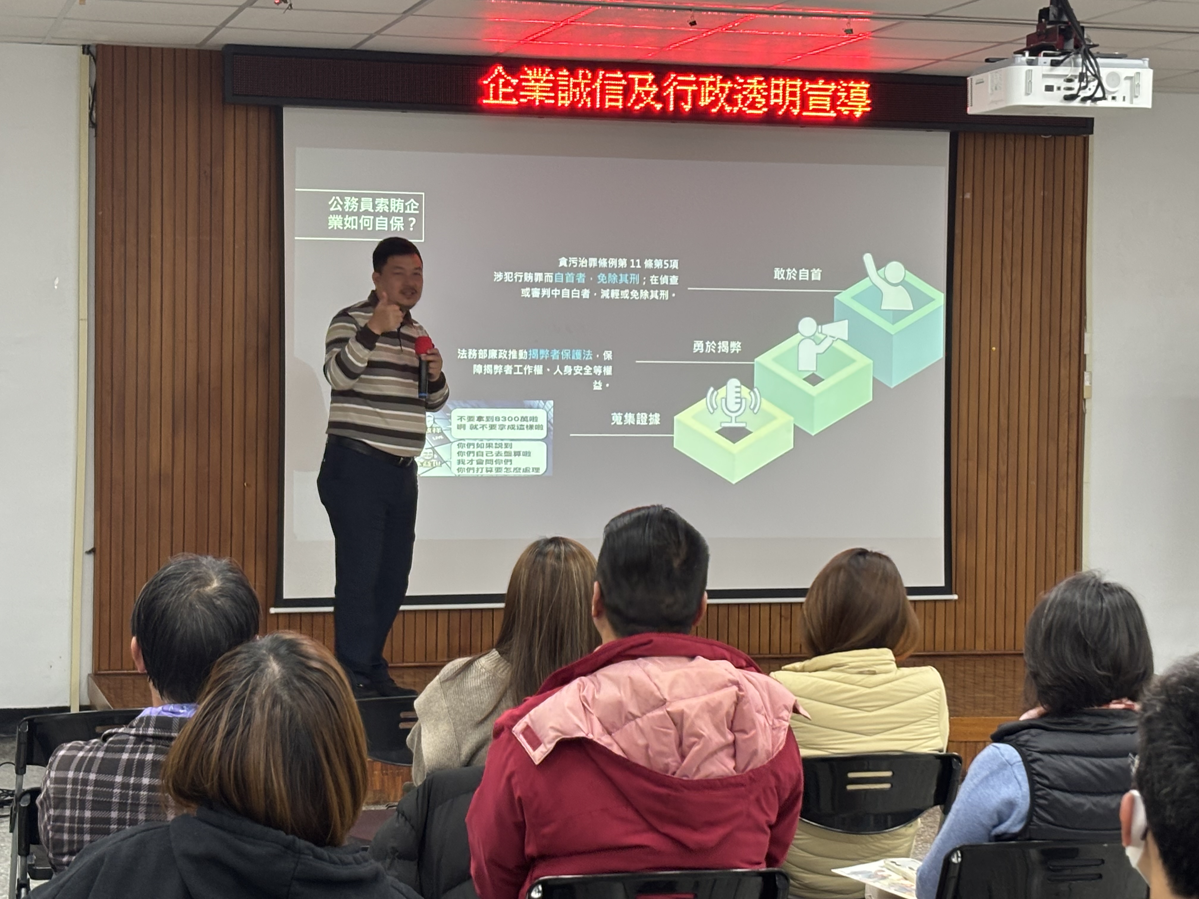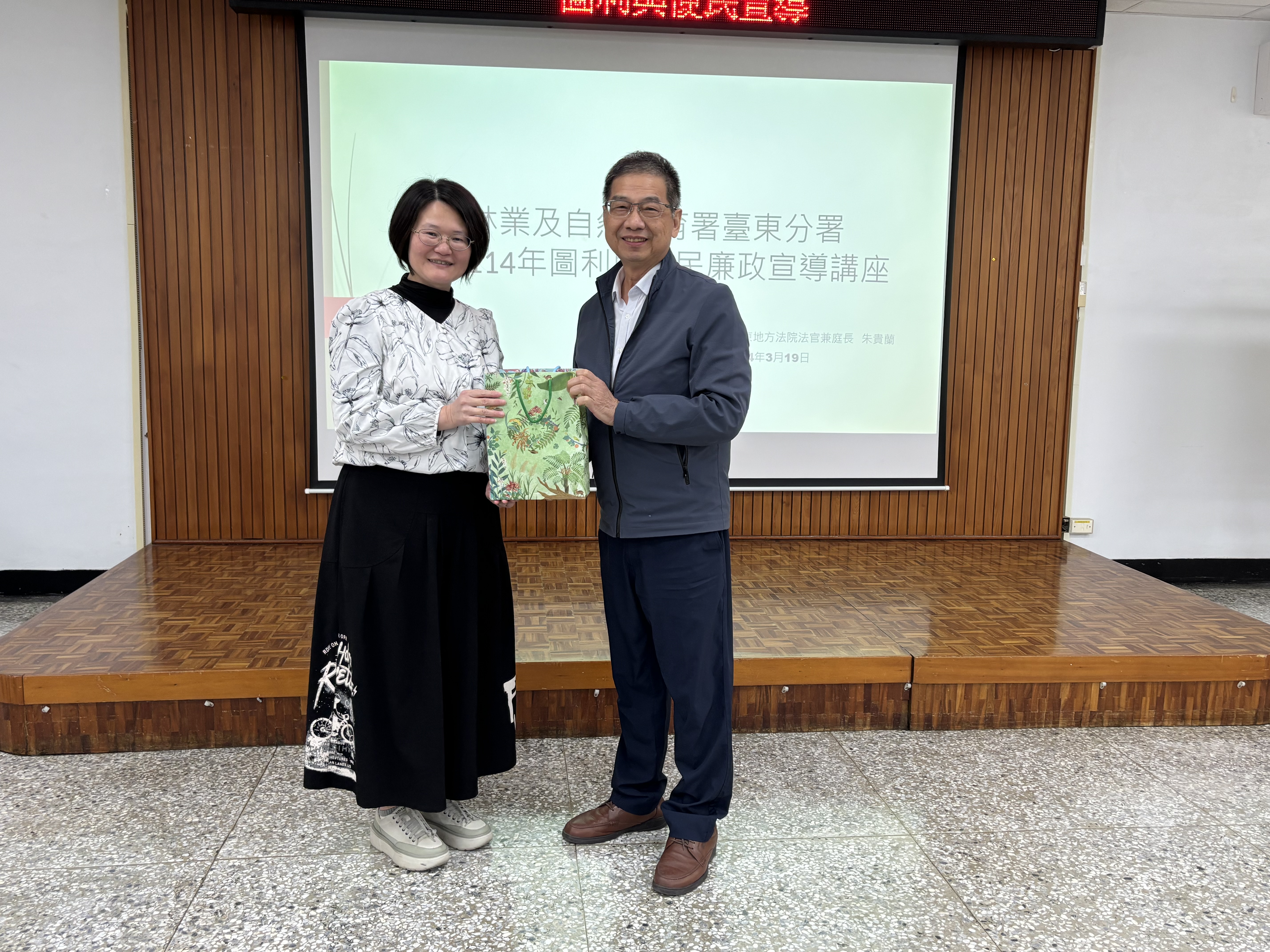 為強化公務員法治觀念,確保行政作業廉潔透明,林業保育署臺東分署於19日舉辦廉政講堂,上午邀請台灣自來水股份有限公司第十區管理處政風室溫主任講授「公職人員利益衝突迴避法」,下午則由臺東地方法院朱庭長講授「圖利與便民」,以及本分署政風室胡主任主講「企業誠信與行政透明」及「公務員廉政倫理規範與公務機密」。 上午場講座由溫主任講授,內容涵蓋如何防範職權濫用、規避法律風險及落實誠信施政,以確保政府決策公正透明。為深化機關內部法治意識,提升同仁對利益衝突的警覺,講座著重於法律適用範圍及責任,並透過案例解析,強調依法行政與程序正義,以增進民眾對政府廉潔施政的信任,總共有40多位同仁參加講習。 下午場「圖利與便民」講座邀請臺東地方法院朱庭長,解析公務機關在依法行政與便民服務間的平衡,確保法治精神與公共利益兼顧。講座涵蓋違法態樣與風險分析,並邀集農業部所屬機關及相關業者參與,一共有50多位公務員與業者參加。會後學員們也與講師交流,深化廉政法規理解。政風室問卷顯示,多數與會者對講座內容與安排高度滿意,認為對工作助益良多。 最後,「企業誠信與行政透明」講座由本分署政風室胡主任主講,探討政府與企業如何透過競標、公務合作及內部治理建立廉潔經營環境,並透過資訊公開與風險管理提升行政透明度,增進社會信任。胡主任強調,誠信是企業永續經營與公私合作的基礎,並鼓勵合作廠商與業者交流共識,促進優質採購環境。此外,他也說明「公務機密、機關安全維護及廉政倫理規範」,強調機密維護、資訊安全與廉政自律對公私部門的重要性。 本次講座透過法規解析、案例分享及互動交流,強化公職人員的法治觀念與廉政意識,深化法治意識,避免利益衝突,並促進依法行政與便民服務。同時,推動企業誠信與行政透明,建立廉潔的經營環境,提升政府施政公信力,確保廉潔高效的行政運作。
