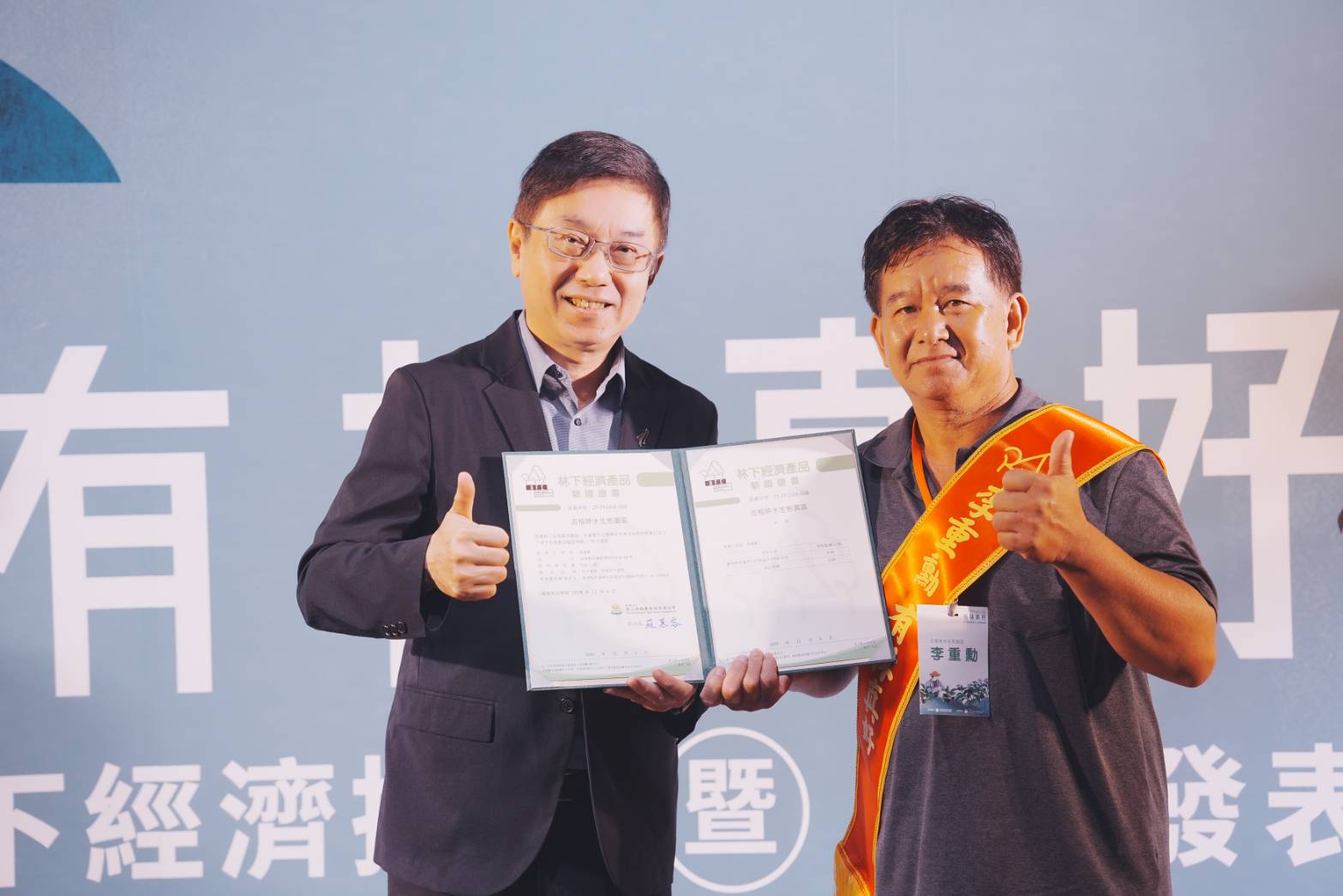 昨(6)日,林業及自然保育署於臺北舉辦「林下經濟授證暨成果發表會」,肯定各分署輔導林農以友善方式耕作、守護山林的努力。臺東分署此次輔導的李清亮先生、李重勲先生,及金峰鄉羅忠輝先生、許新嬌女士、杜義輝先生等五位林農,順利通過林下經濟產品驗證取得標章,展現在落實林下友善耕作與永續經營上的成果。認明驗證標章消費者可安心購買高品質森林副產品,也讓林農的辛勤付出獲得肯定。 為維護森林生態並活絡山村經濟,林業及自然保育署自2019年起積極推動林下經濟政策,透過在地輔導、技術支援與制度化授證機制,鼓勵林農以友善方式經營林地,實踐「森林共好、社區共榮」的願景,並以「維持森林覆蓋、兼顧林下利用」為核心價值,透過多元經營模式,讓林地不僅能維持生態功能,更能創造生產價值及分享森林惠益。臺東分署透過提供林業機具補助、友善經營及技術研習輔導課程,協助林農逐步建立合法經營、標準化管理與提升品牌識別,讓生態保育與林農生計也能兼容並蓄。 堅持自然、耕耘山林的段木香菇生產引路者|李清亮先生 授證典禮上,李清亮先生獲邀為「段木香菇產品」受證代表上台發表感言,分享他投入林下經濟的心路歷程。他回憶道:「由臺東分署輔導種植段木香菇,起初產量很好,不過遇到段木不足的困境,致使香菇產量忽高忽低,但透過這幾年的友善耕作看到林地裡動植物的生生不息,讓我更堅信林下經濟的意義及價值。」。他認為段木香菇生產不只是養家活口,更是與森林共存、與社區共榮的實踐,也讓出外打拼的家人願意返鄉相聚,一起實現農林共生及永續環境的願景。他補充道:「林下經濟是一個正確的政策,不僅振興山村經濟,也讓林農更有經營森林的動力。」;在臺東分署的輔導下,李清亮先生與分署合作建立段木來源自給永續循環機制,降低對外購段木的依賴,提升林地永續利用效率,使香菇生產與森林經營緊密結合,充分展現林下經濟政策落地成果。 不氣餒到高效生產的段木香菇職人|李重勲先生 在長濱鄉樟原村的山林裡,李重勲先生歷經先前反覆不斷的嘗試修正,最終建立能穩定量產的段木香菇基地。他費盡心思的善用省工機具降低人力負擔,導入現代化管理,讓生產更高效穩定。李重勲先生在分署林下經濟培力課程中,更是省工機具達人講師,將自身經驗分享給其他林農,落實「友善環境、高效生產」理念。今天他親自到場受證時表示:「林下經濟不只是產業,更是守護山林、提供永續生計的最佳選擇。」 南迴原鄉林下經濟友善種植典範|金峰鄉林農羅忠輝先生、許新嬌女士、杜義輝先生 在林業及自然保育署臺東分署與金峰鄉公所協力輔導下,金峰鄉林農羅忠輝先生(臺灣金線連)、許新嬌女士(段木香菇)及杜義輝先生(臺灣金線連)也在這次首波順利通過林下經濟驗證名單內。結合分署提供林下經濟培力課程與技術指導,金峰鄉公所投入現場栽植輔導與資源整合,讓輔導量能透過跨域合作雙管齊下,培力林農克服栽植困境。金峰鄉公所鄉長蔣爭光特別北上為林農打氣,肯定他們的努力。透過中央與地方的協力合作,林農以友善環境方式種植段木香菇與臺灣金線連,活化土地,也帶動山村經濟,成為南迴地區林下經濟推動的典範案例。 林業保育署臺東分署表示,未來將持續推廣林下經濟授證制度與加強在地培力輔導計畫,鼓勵更多林農加入,結合在地文化、觀光與生態教育,打造具區域特色的綠色產業。透過「政策導向 × 在地實踐 × 產業鏈結」三軸概念,讓森林成為活絡地方經濟、守護生態的動能來源,實現「生態保育、社區共榮、永續山村」的林下新價值。